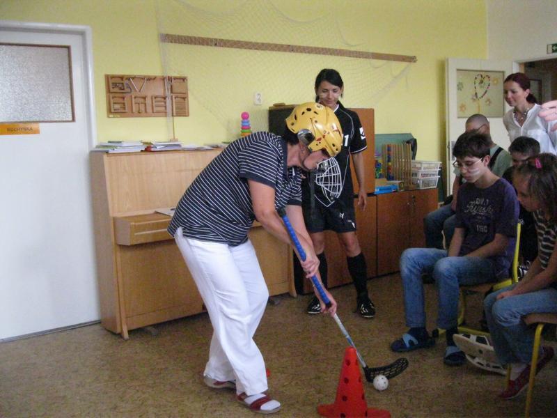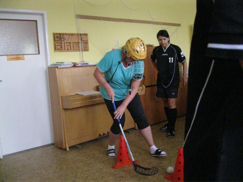 Paní učitelky a vychovatelky za velkého povzbuzování svých žáků zápolily v netradičních disciplínách - hod na šaška, slalom s florbalovým míčkem a přetahování lanem. Horké favoritky od počátku byly tři - paní vychovatelky Mazurková a Zlatníková a paní učitelka Zlomková. Po těžkém boji nakonec zvítězila paní vychovatelka Zlatníková a odnesla si domů putovní cenu.