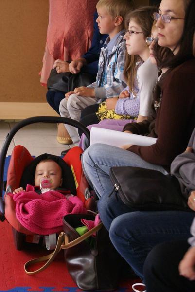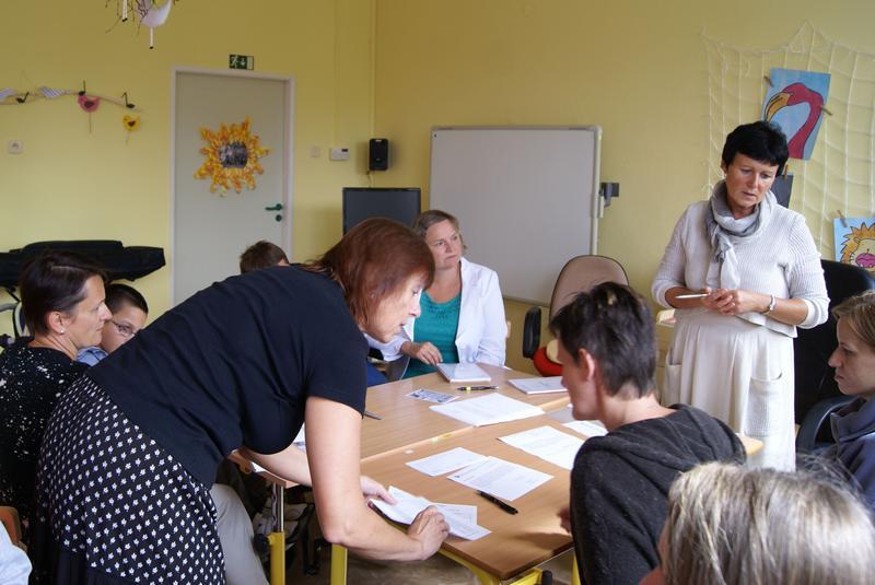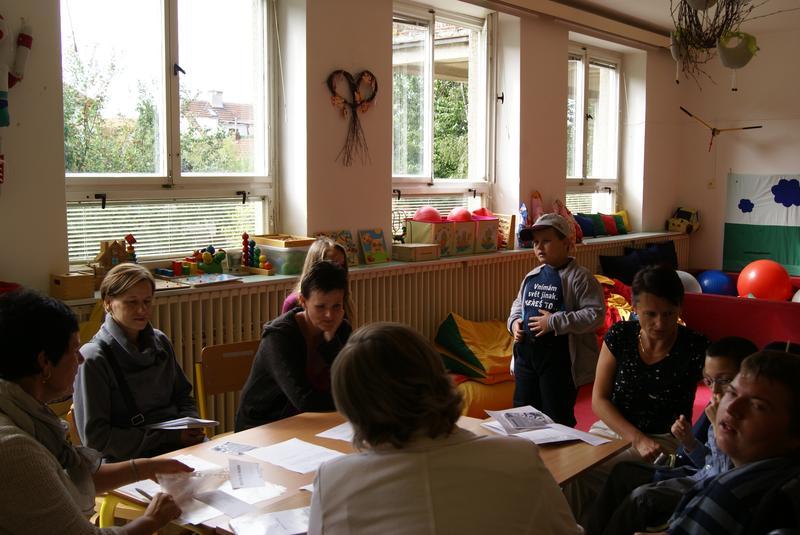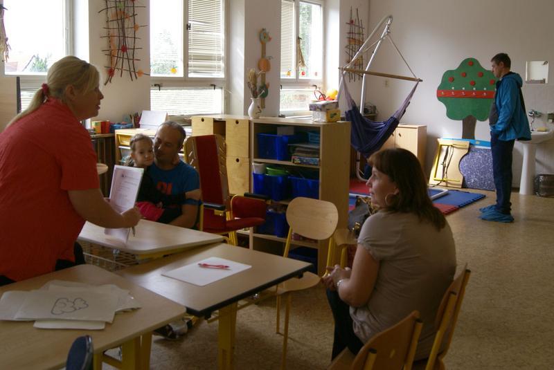 Po splnění úředních formalit se při odchodu z budovy mohli rodiče poradit s paní Veronikou Pavlíkovou o péči a cvičení nohou pro své děti i sebe.