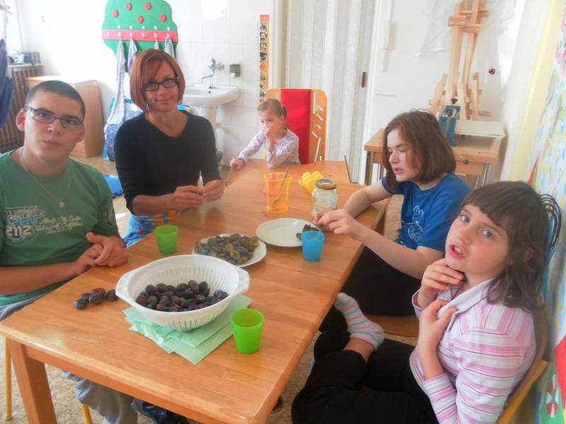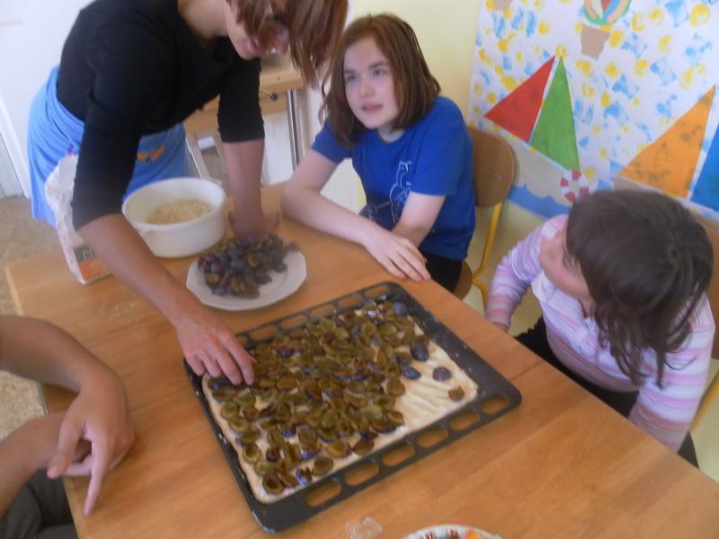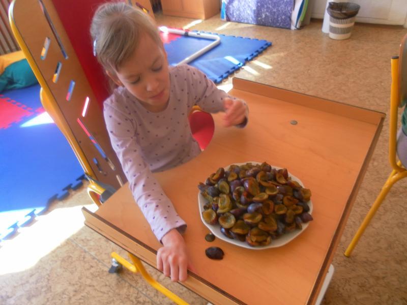 Spojili jsme proto smyslovou a pracovní výchovu a upekli si skvělý švestkový koláč. Následovaly ochutnávky nejen známého ovoce, ale také některých netradičních kousků, například oškeruší, ostružin a malin.