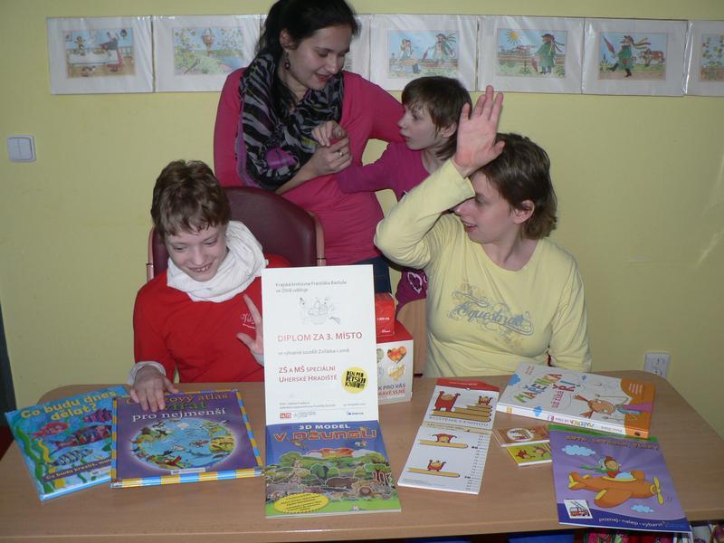 Z 202 vystavených prací v přízemí 15. budovy Baťova institutu se naše holky umístily na 3. místě. Úspěch je o to větší, že výtvarné práce hodnotili návštěvníci knihovny. Do 18. 12. probíhá výstava prací ve zmiňovaném přízemí, pak se přesune do 3. patra do oddělení pro děti a mládež.