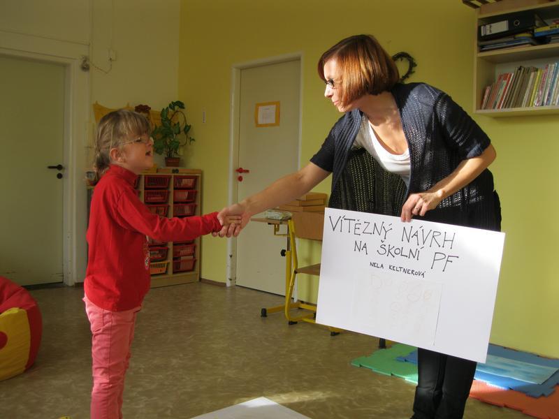 Letošní ročník výtvarné soutěže o nejlepší návrh na školní PF vyhrála Nelinka Keltnerová a její "housenkoví sněhuláci".
