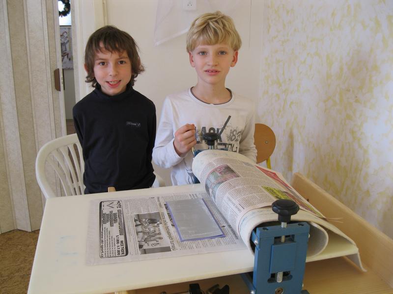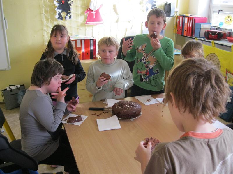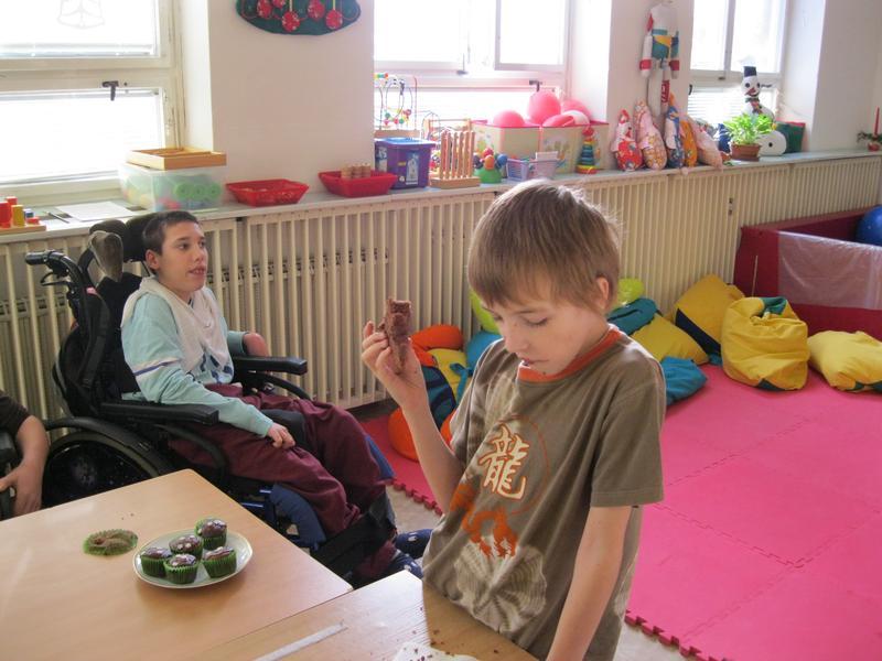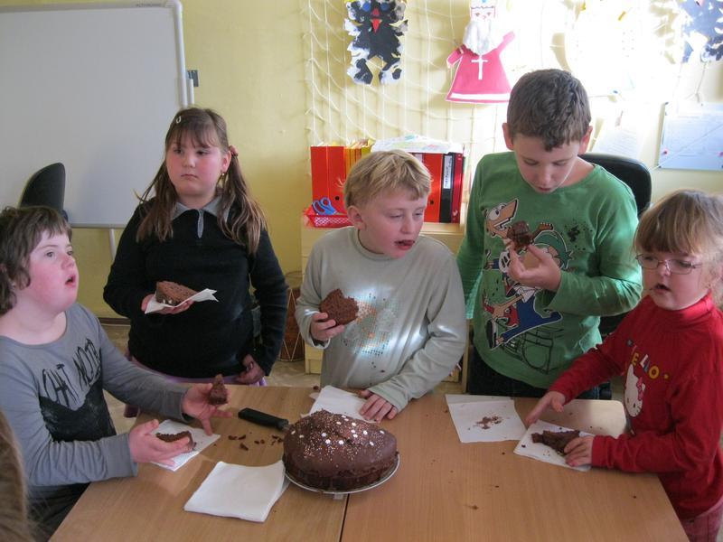 Společně s ostatními dětmi si ve školní družině za odměnu pochutnala na čokoládovém dortu. Pak už jsme stříhali a tiskli...