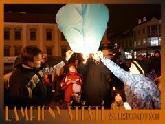 Prostor náměstí prosvětlily lampiónky dětí i přívětivá slova pana místostarosty. Vypuštění pomalovaných lampiónů štěstí se všem skupinkám podařilo, a tak historické budovy Masarykova náměstí získaly nezvykle dramatický odstín způsobený barvami vypouštěných lampiónů.