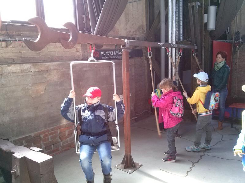 V areálu vysokých pecí ve Vítkovicích jsme navštívili technické muzeum. Tam jsme si vyzkoušeli řízení autobusu, zvedání závaží přes kladku, výrobu elektřiny jízdou na kole a fotili jsme se ve starých automobilech.
