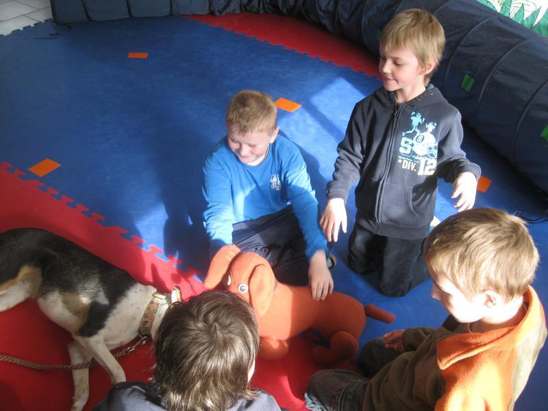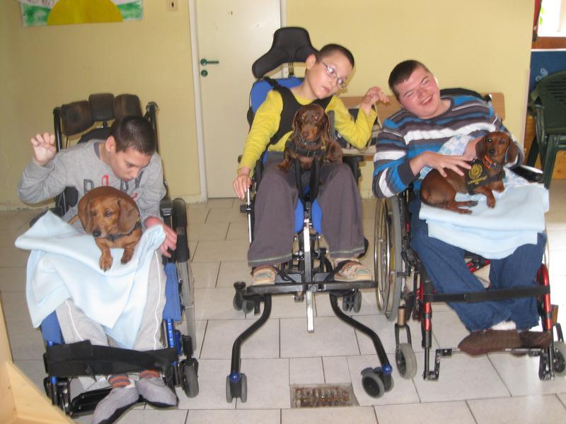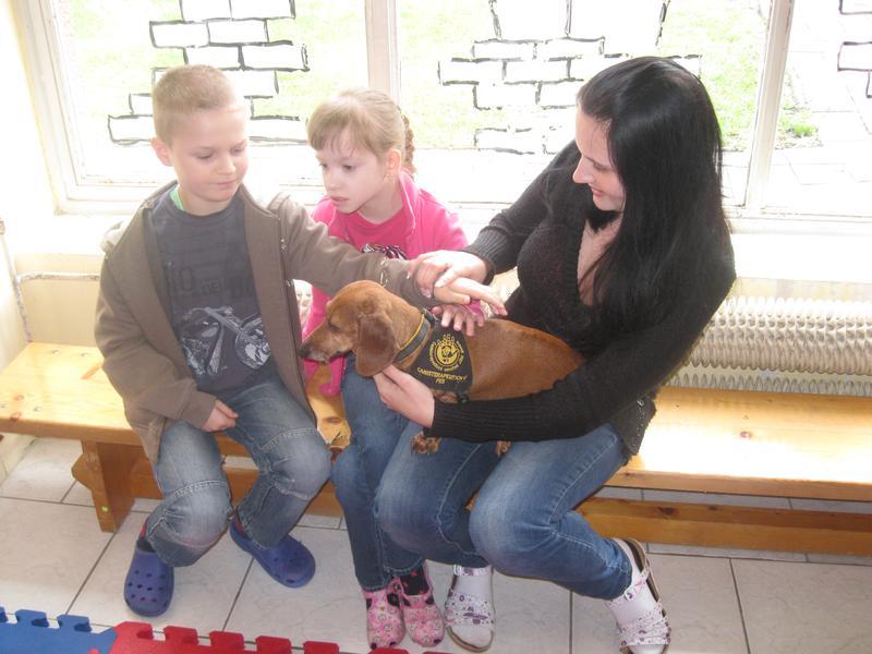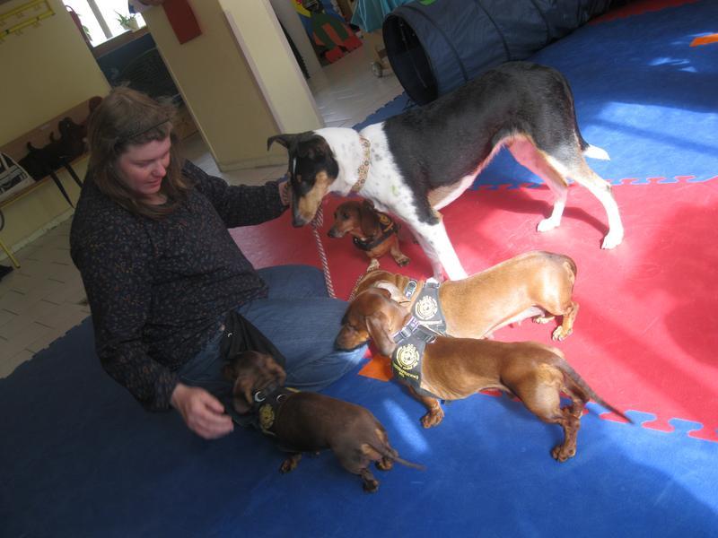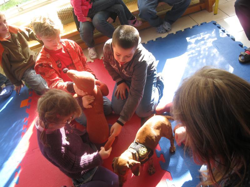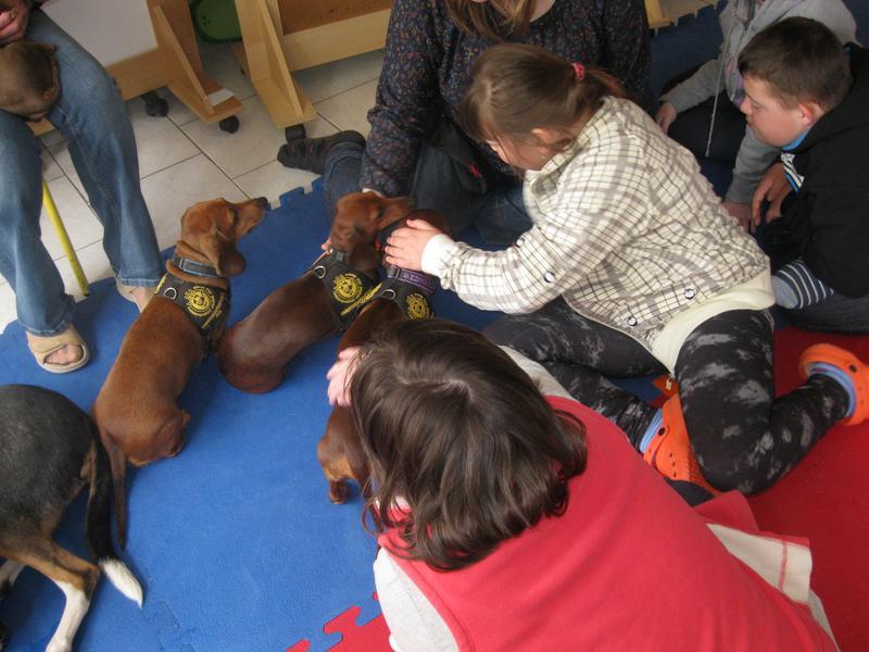 Před velikonocemi k nám opět přijela slečna Mišáková se svými svěřenci – psíky jezevčíky a krátkosrstou kolií, která od předchozí návštěvy poněkud povyrostla.