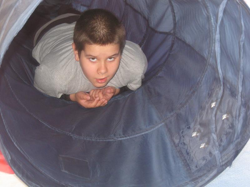 Opět jsme zkoušeli staré známé věci – vedení psa na vodítku, prolézání tunelem, některým z nás stačil jen kontakt a pomazlení s nejlepším přítelem člověka.