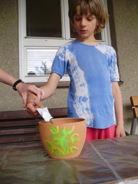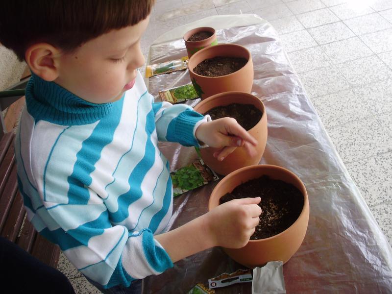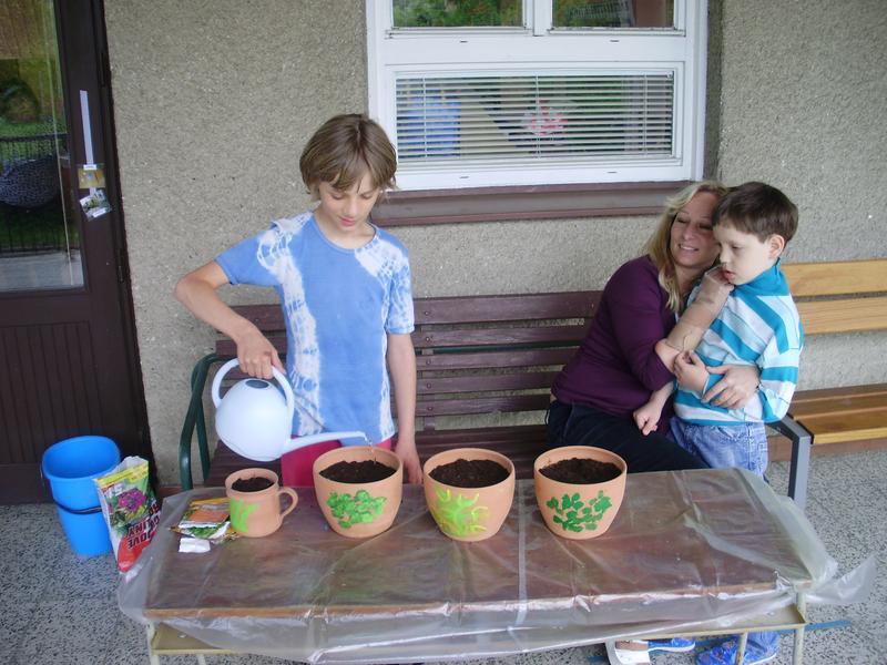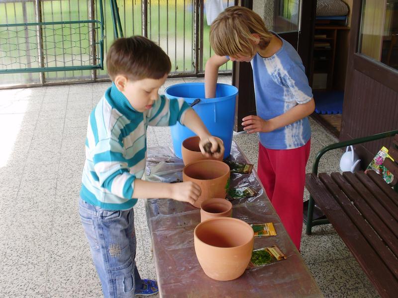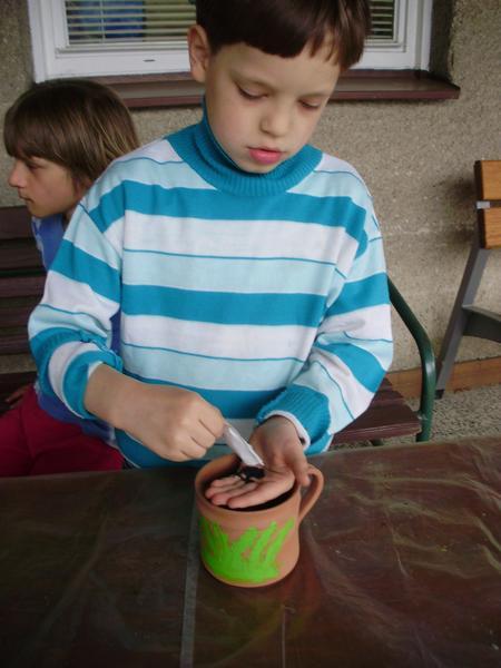 My jsme také zatoužili mít svoji malou zahrádku. Nakoupili jsme semínka a pomalovali květináče, aby jsme věděli, na co se můžeme těšit. Velmi nás bavilo chystat hlínu a semínka zasévat.
