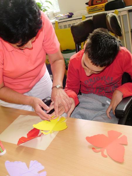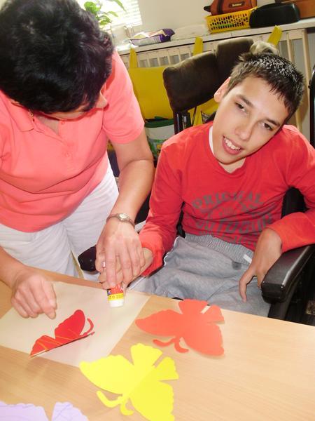 Naši motýli nejsou živí, vyrobili jsme si je sami ve výtvarné výchově.