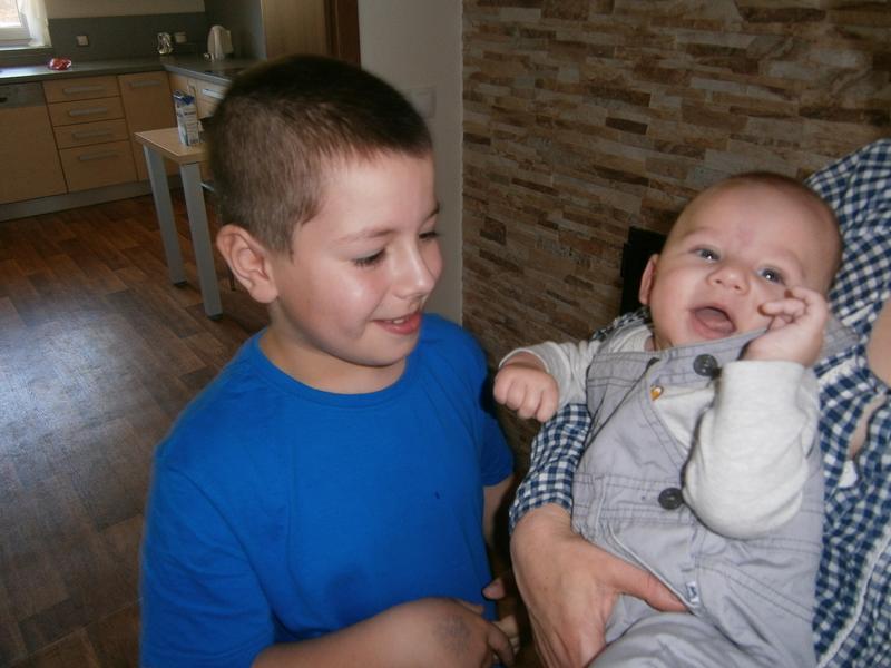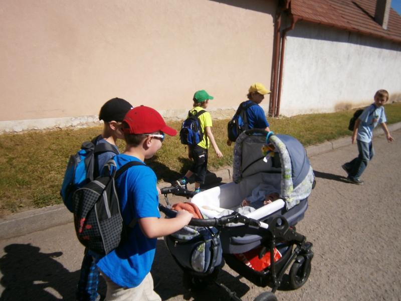 Kluci z V. třídy jeli navštívit paní učitelku na mateřské dovolené a malého Vojtíška.