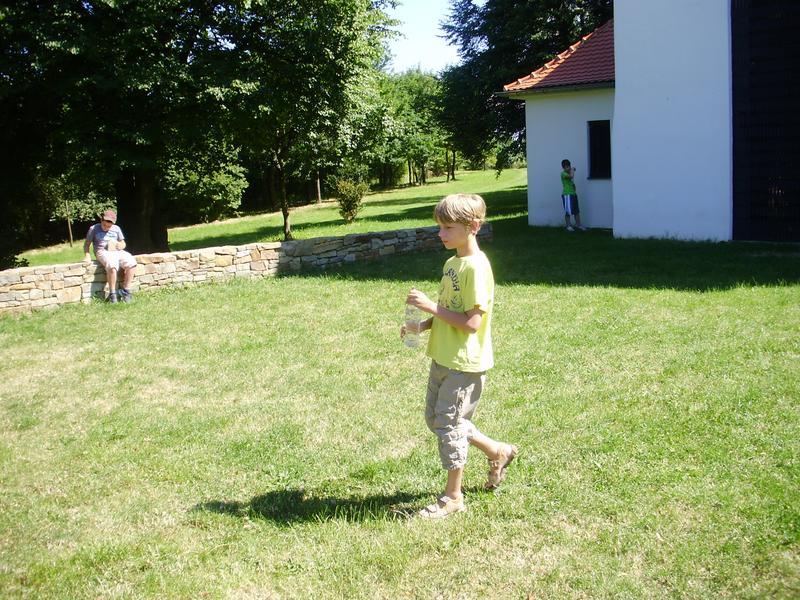 Hezky nám to šlapalo, dokonce ani kopec nám nedělal problém. U kaple jsme si dali vrcholový bonbon, posvačili a odpočali si. Výhled byl nádherný.