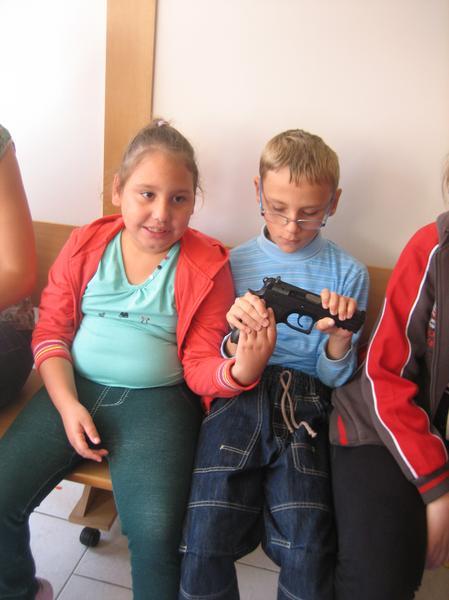 Povídali jsme si o bezpečnosti, dopravě, nebezpečích, o situacích, kdy se máme obrátit o pomoc, o práci policistů... Také jsme viděli uniformy, výbavu, některé věci jsme si mohli důkladně prohlédnout!