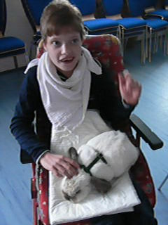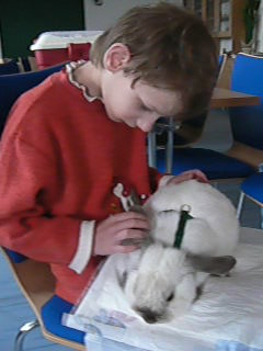Na Bělince máme pravidelně každé pondělí canisterapii. Paní Supová pro děti, co mají zatím obavy z pejska nosí králíčka Snížka. To, jak se nám daří, je vidět na připojeném foto. A po práci si VYDATNĚ odpočineme.