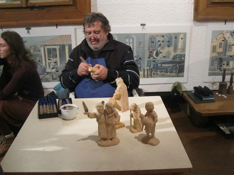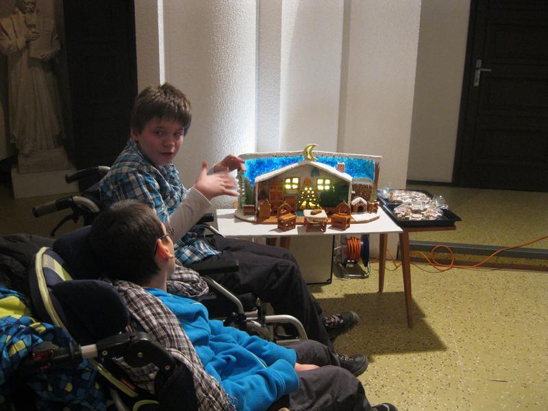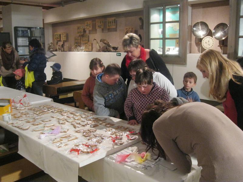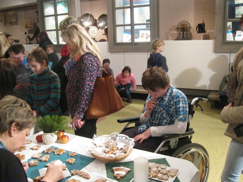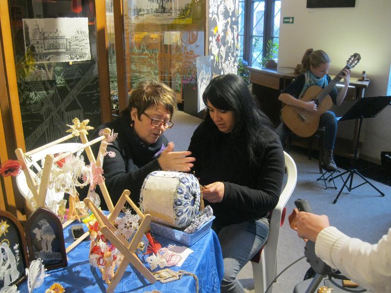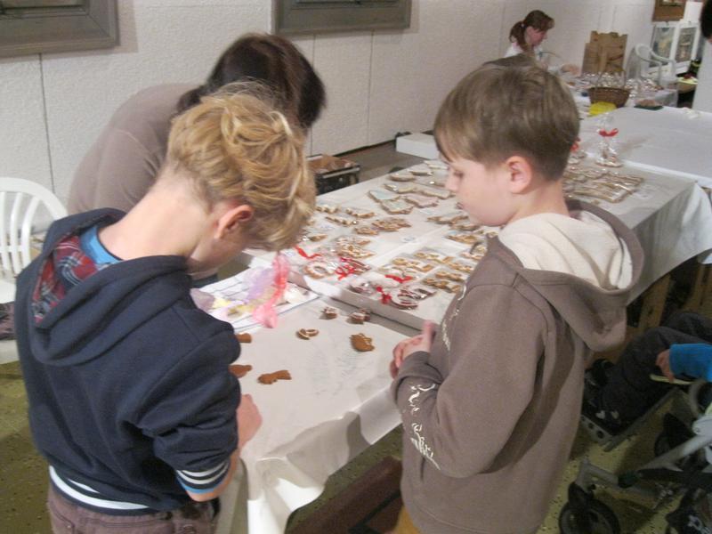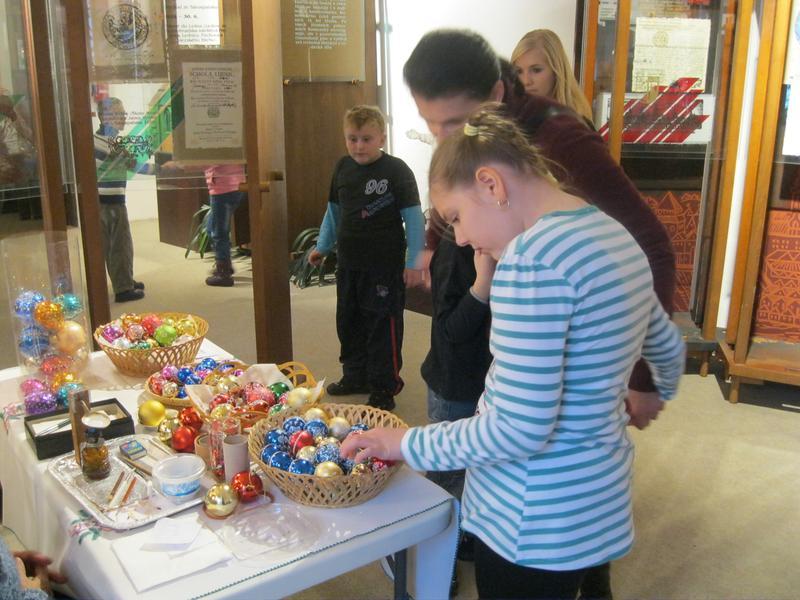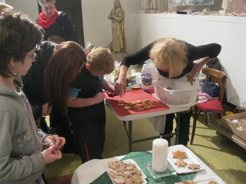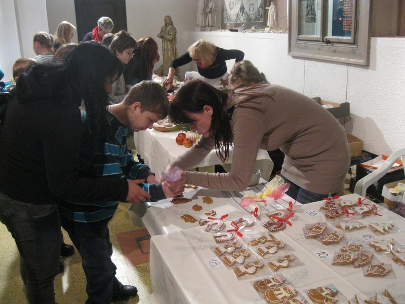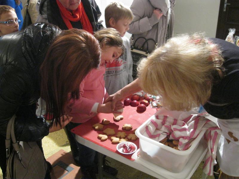 Zde jsme si mohli prohlédnout krásně zdobené vánoční perníčky a zdobení jsme si mohli i sami vyzkoušet. K vidění byla dřevořezba figurek do Betléma, výroba figurek z kukuřičeného šústí, háčkované ozdoby, zdobení baňek voskem, štípané holubičky aj. lidová řemesla. Paní vychovateka Zlatníková si např. zkusila paličkování.