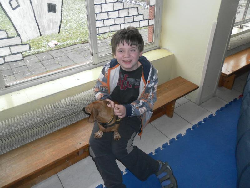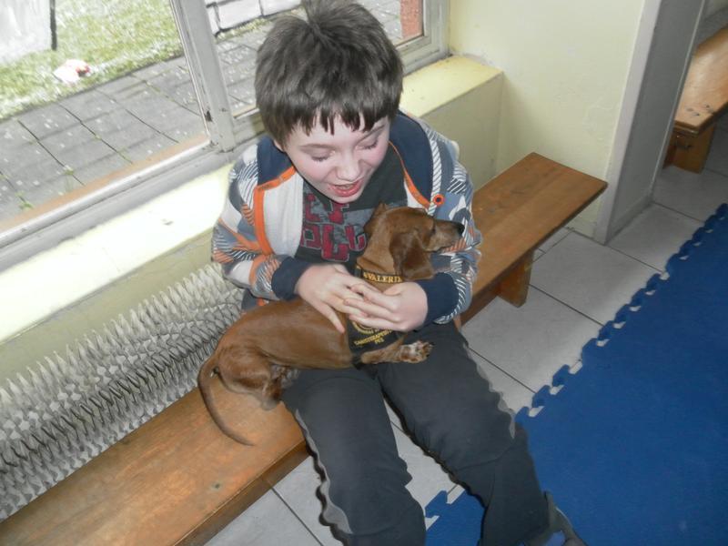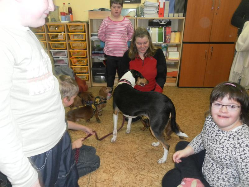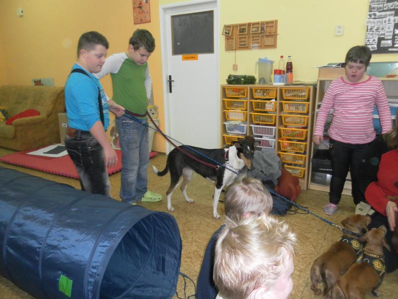 Návštěva psích kamarádů v základní škole speciální.