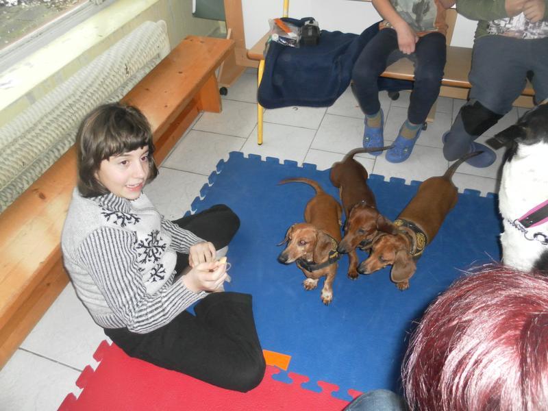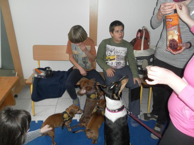 Po delší pauze nás opět navštívila paní Mišáková se svými svěřenci. Jelikož dva z pejsků jsou v očekávání nových přírůstků do psí rodiny, bylo jich tentokrát méně, ale i to stačilo k navození dobré pohody a k příjemným zážitkům.