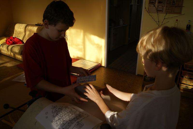 Krásné školní novoročenky ochotně vyrábí kluci z V. třídy.