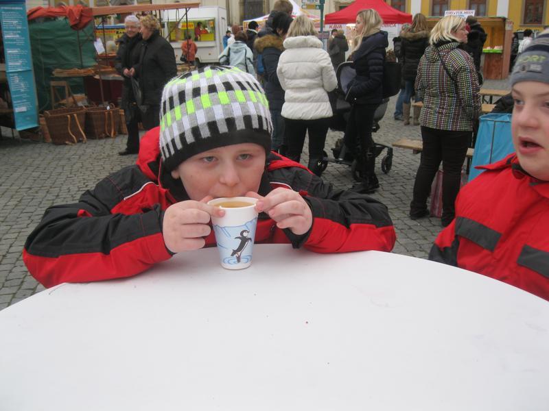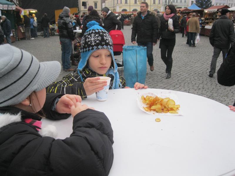 A tak jsme se dnes v rámci kroužku vydali na jarmark, kde jsme nesháněli žádné dárky, ale přišli jsme pouze nasát příjemnou předvánoční atmosféru a ochutnat speciality, které zde nabízeli a voněly celým náměstím. Pochutnali jsme si na bramborových spirálkách a vánočním nealkoholickém punči.