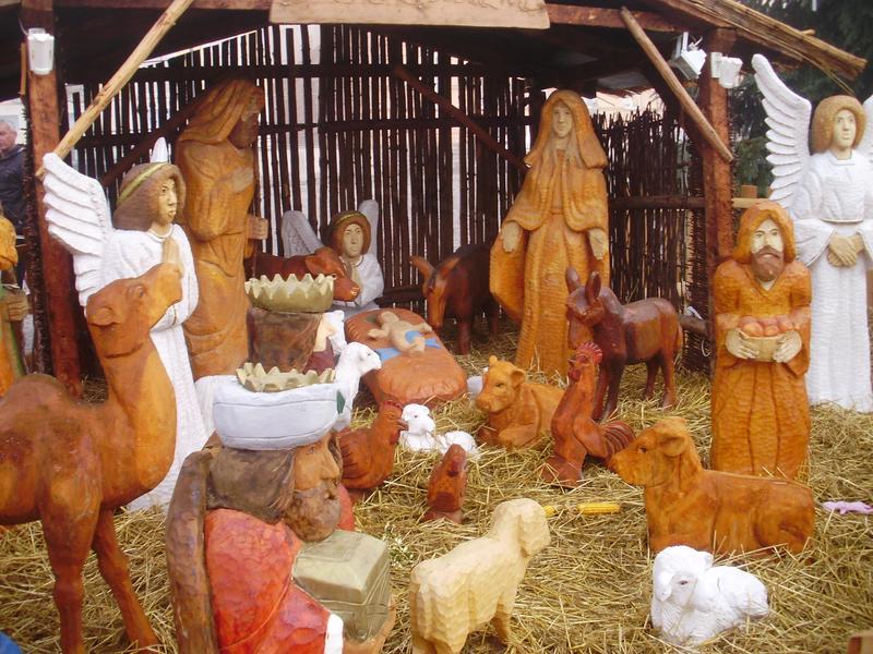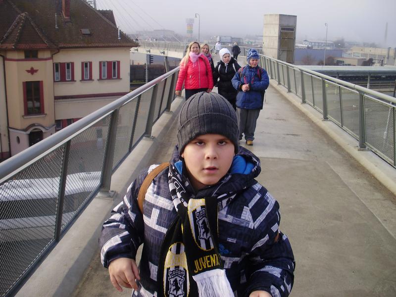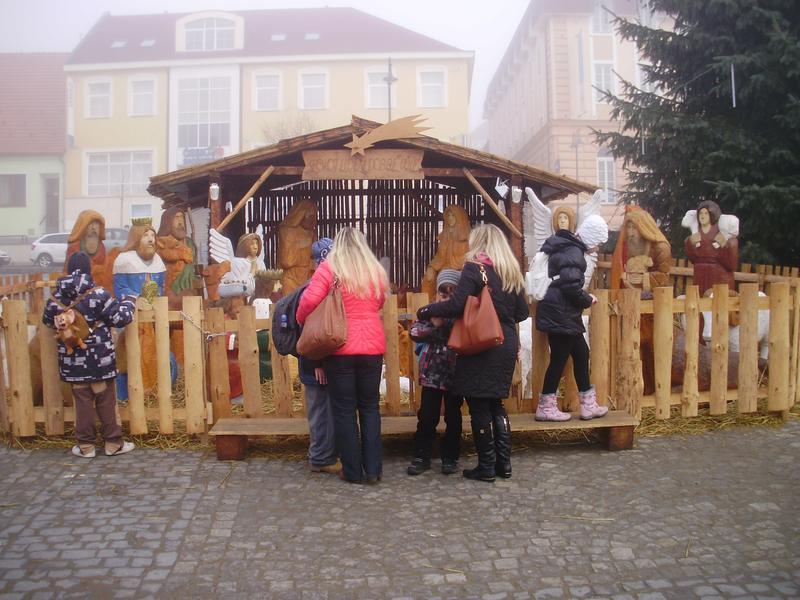 Cestovali jsme vlakem. Počasí vypadalo pošmourně, ale během dopoledne se ukázalo i sluníčko. Viděli jsme vyřezávaný betlém na náměstí, podívali jsme se do kostela i do kláštera a obdivovali vánoční výzdobu.