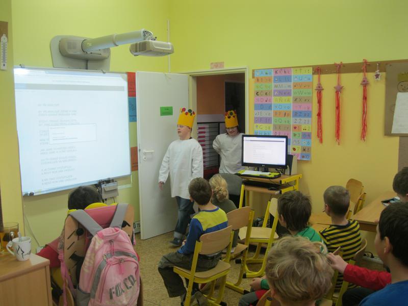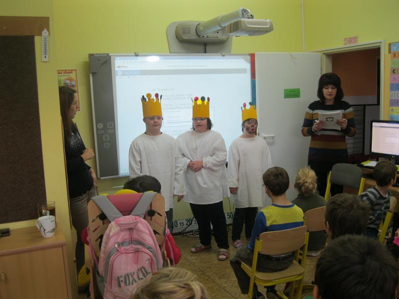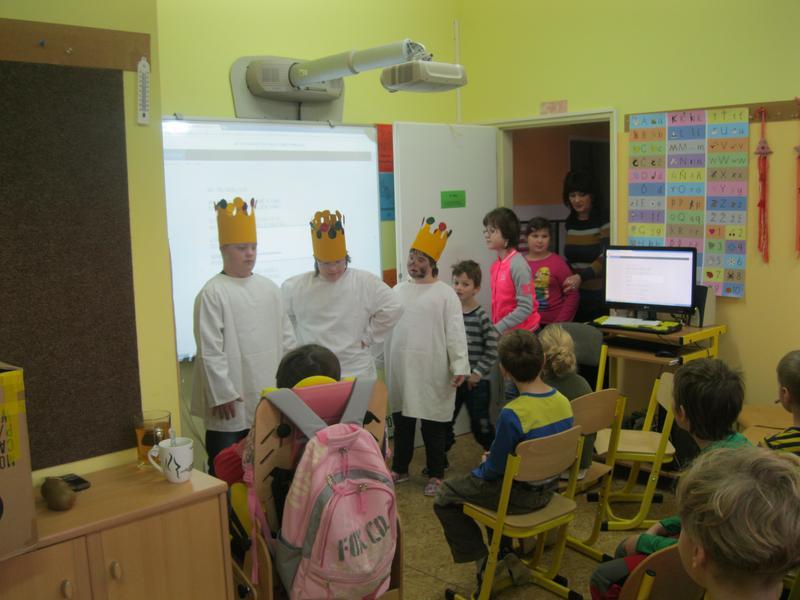 My tři králové jdeme k vám....text této písně nás provázel celým dnešním dopolednem. Při společném projektovém vyučování jsme se seznámili s legendou o slavných mudrcích a vyzkoušeli si celou řadu aktivit - hledání v atlasu, grafomotorické listy, psaní K + M + B, vymýšlení slov, zpěv a hlavně přemýšlení nad poselstvím této tradice.