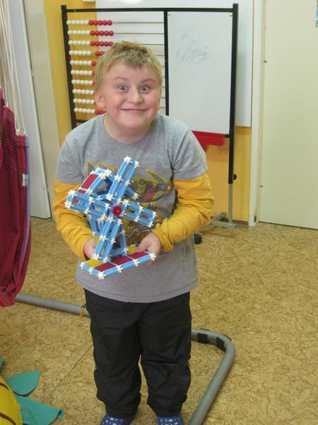 Podívejte se, jak jsme si dnes hezky hráli v družině a jaký větrný mlýn postavil Lukáš se stavebnice SEVA.
