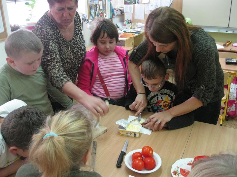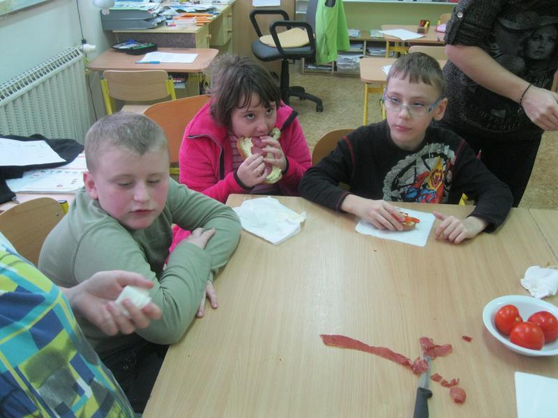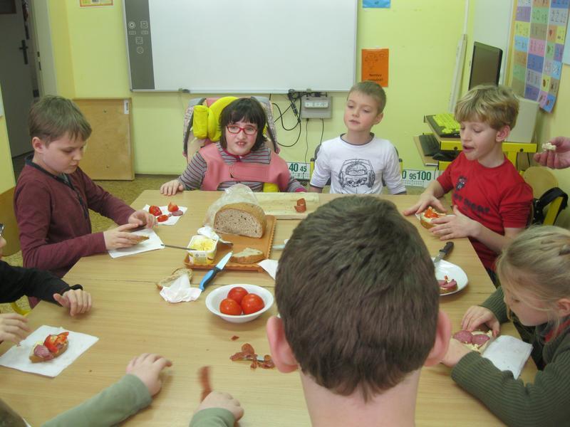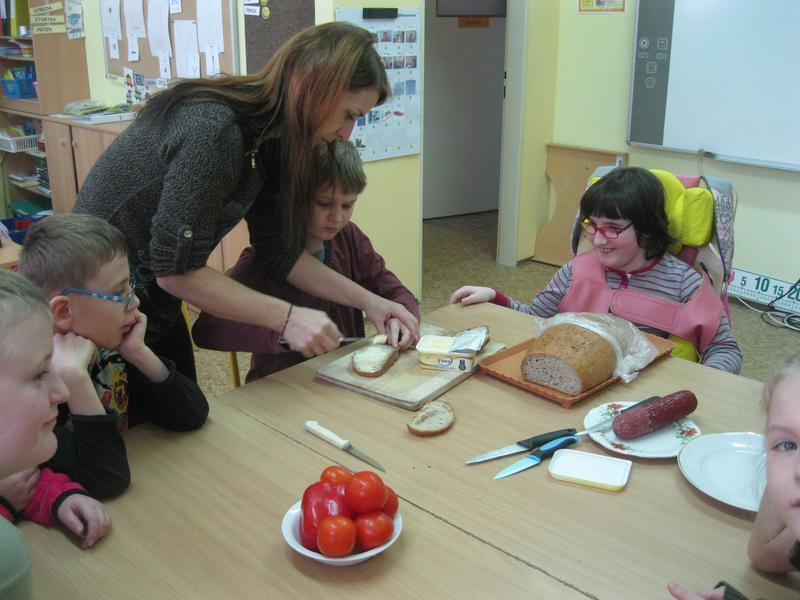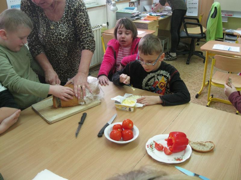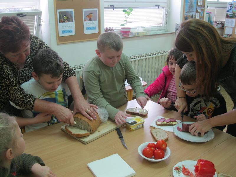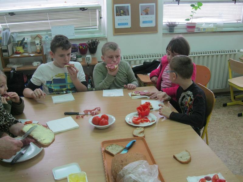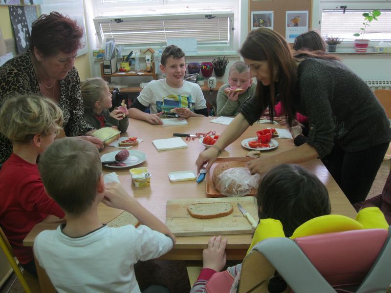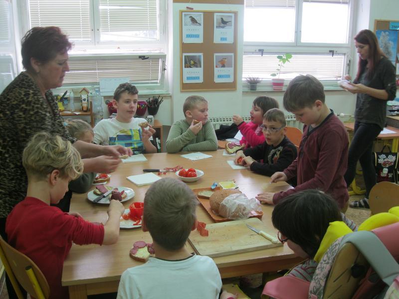 Krájení chleba, salámu i mazání krajíce jsme hravě zvládli. Všem moc chutnalo a těšíme se, že občas vystřídáme naše maminky při přípravě svačiny do školy.