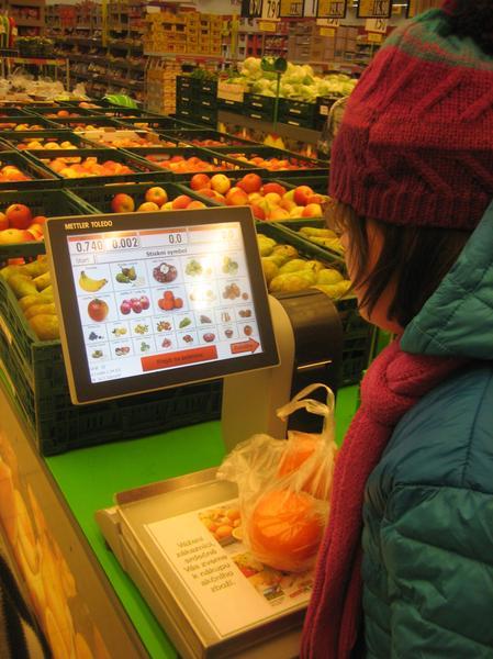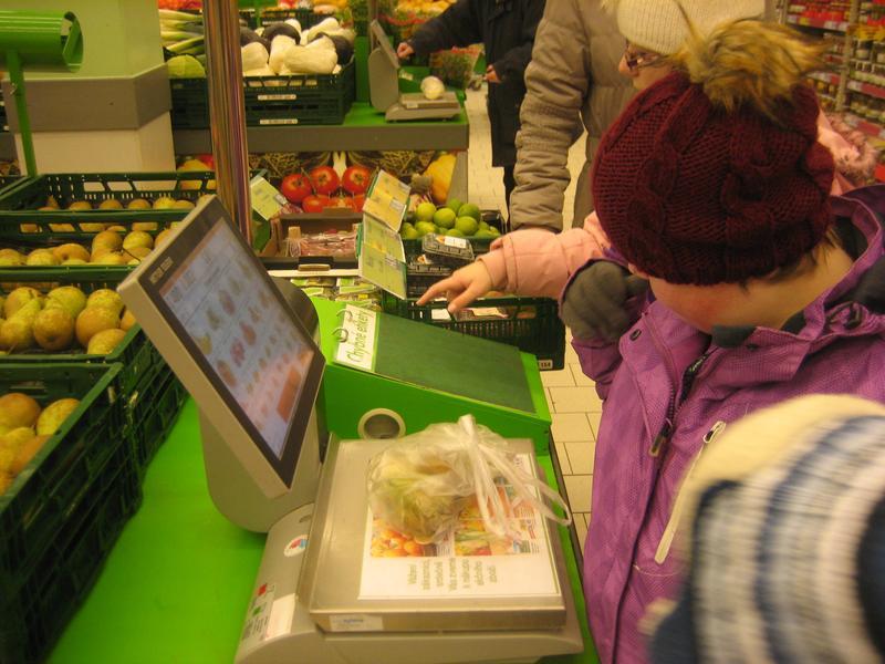 Náš úkol byl nejenom si procvičovat nakupování a správné chování, ale především si vyzkoušet a procvičit, jak se zboží váží... Počasí bylo opravdu zimní, tak jsme si také procvičili chůzi ve sněhu a na zledovatělém povrchu. V Kauflandu jsme nakupovali a vážili ovoce, které budeme potřebovat na nadcházející taneční dopoledne... Také jsme vyhledali zboží, které se prodává po 1 kg nebo po 1/2 kg.