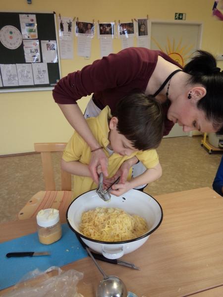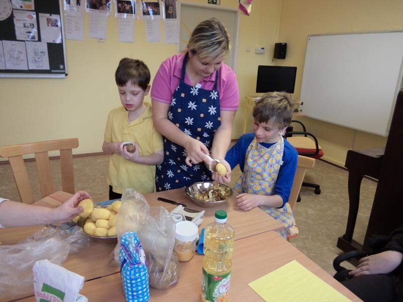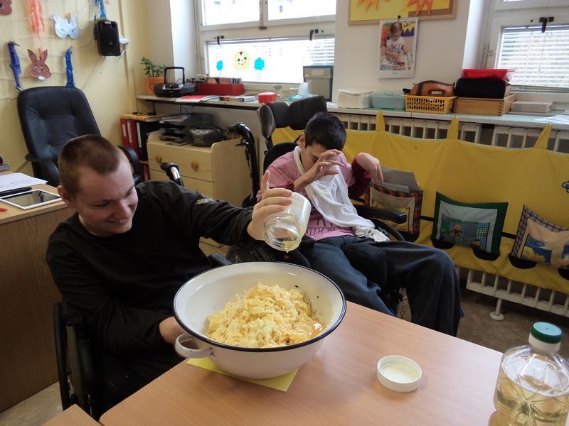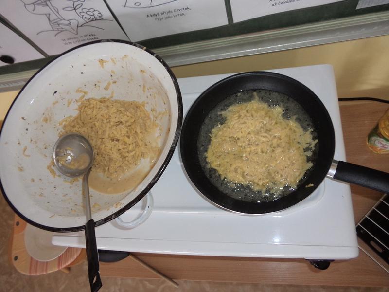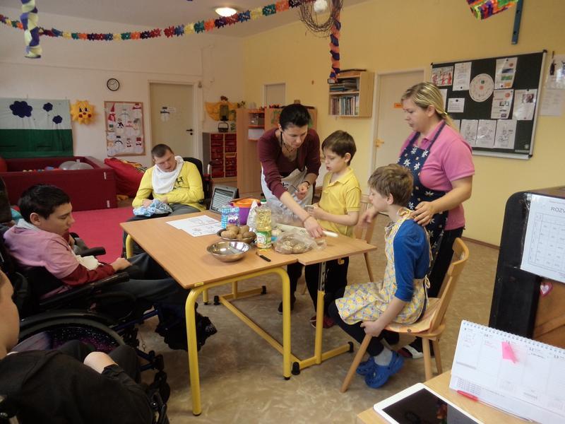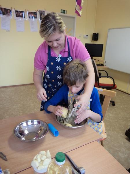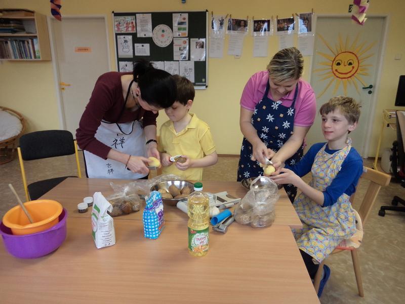 Každý přiložil ruku k dílu a loupali jsme, míchali jsme, sypali jsme, smažili jsme, jedli a voněli po celé škole.