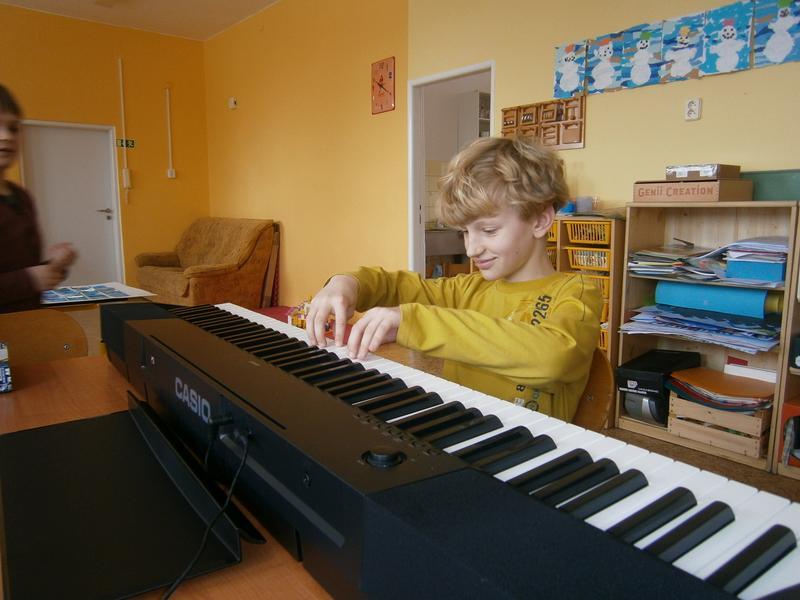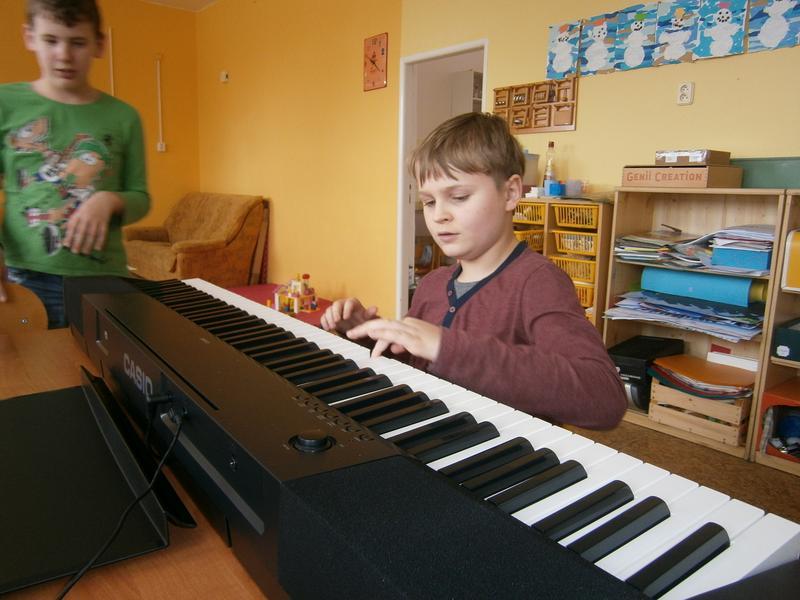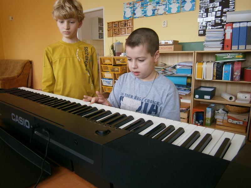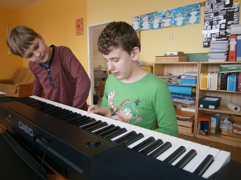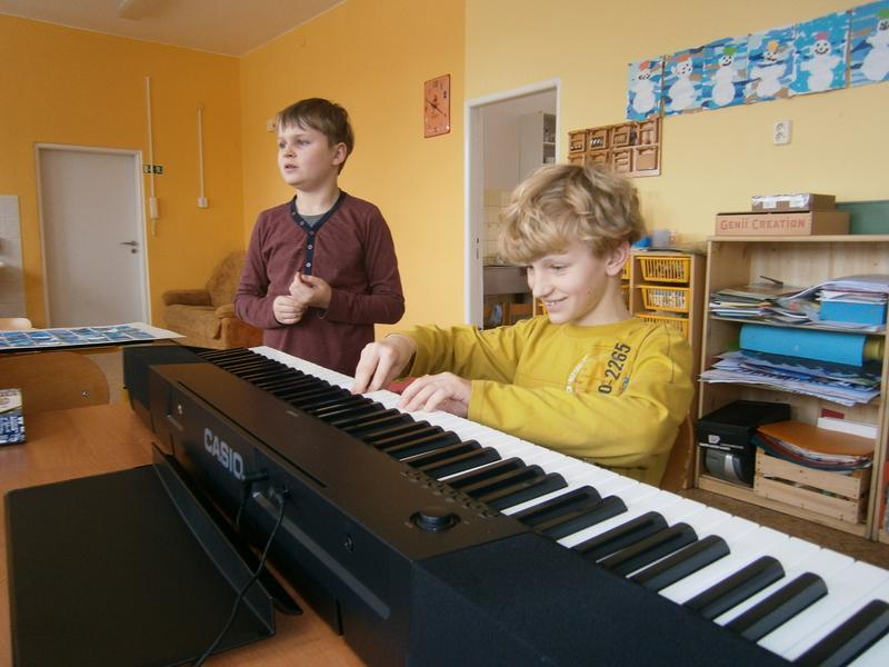 Rozléhající se melodie přilákala i kamarády z vedlejší třídy, kteří nám pomohli s hlasovým doprovodem.