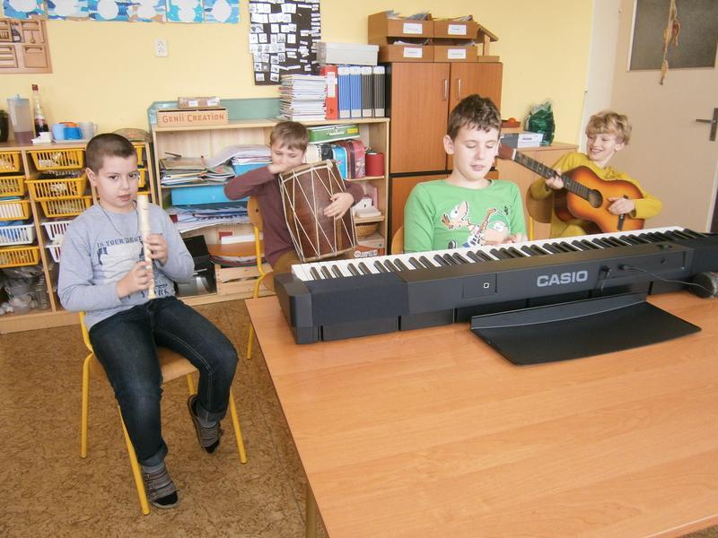 Naše třídní kapela v rámci Hudební výchovy dokonale ovládla čtyři hudební nástroje.