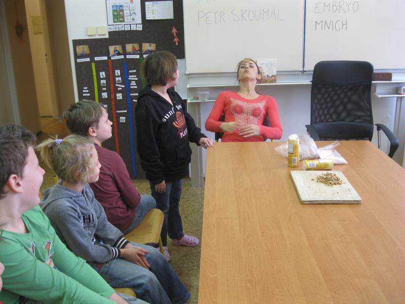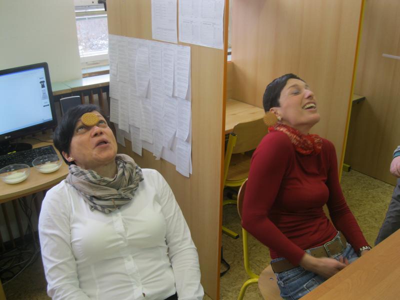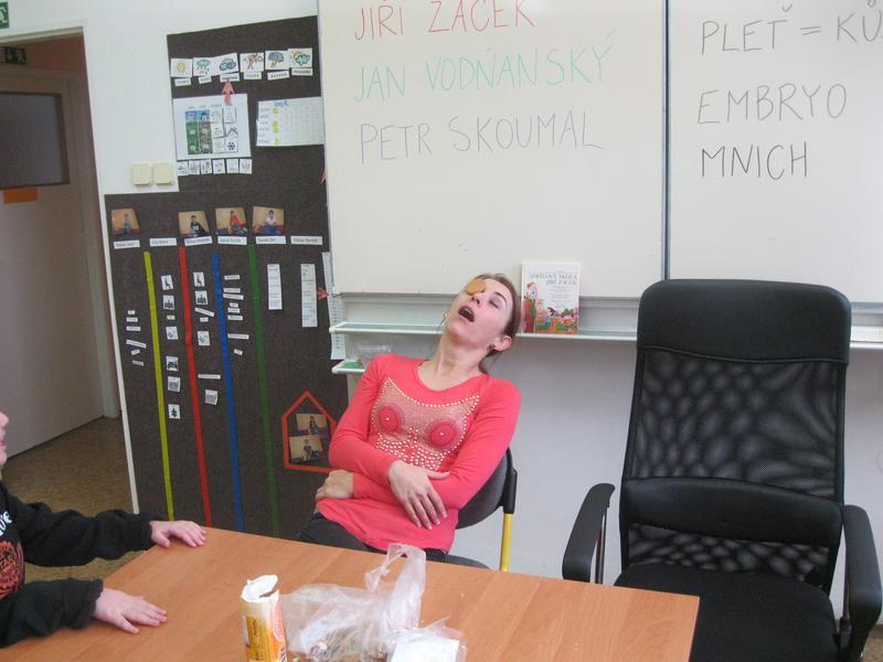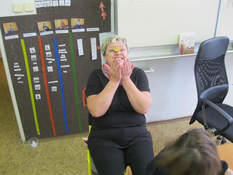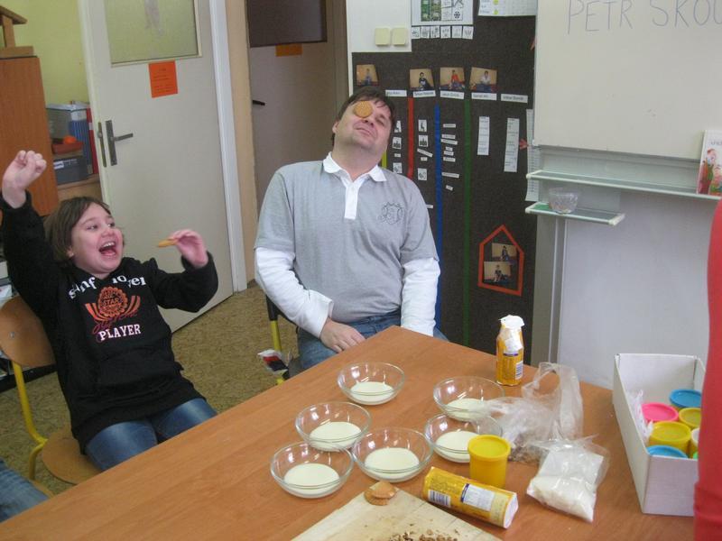 Aby byla vtipná kaše opravdu vtipná, její kuchař se musí hodně smát. Vypomohli jsme si hrou se sušenkami, při které jsme dokonale procvičili mimické svaly v obličeji i naše bránice. Ty nejzdařilejší grimasy a fotografie z vaření vtipné kaše si můžete prohlédnout ve fotogalerii.