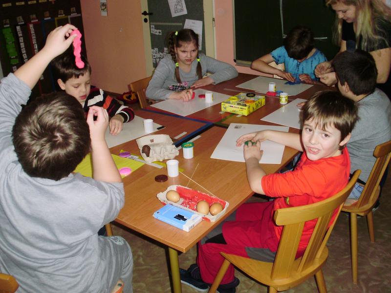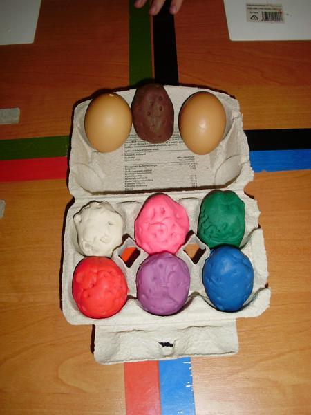Zahráli jsme si na slepičky a každý si vymodeloval a nazdobil vejce podle své fantazie.