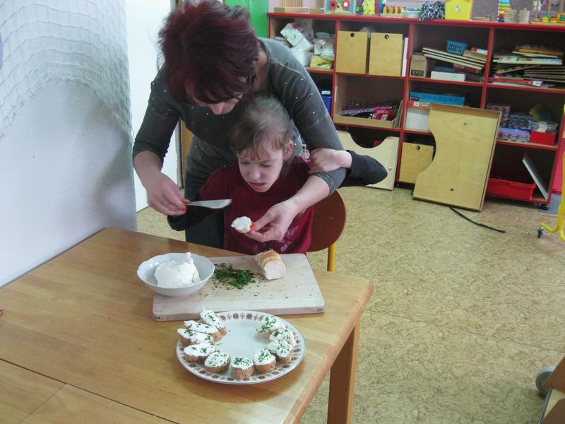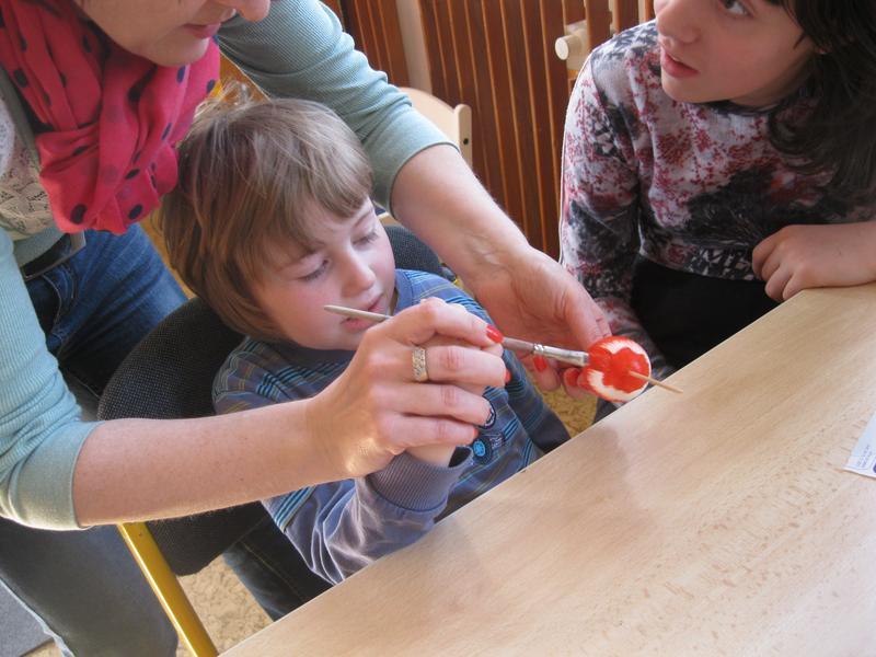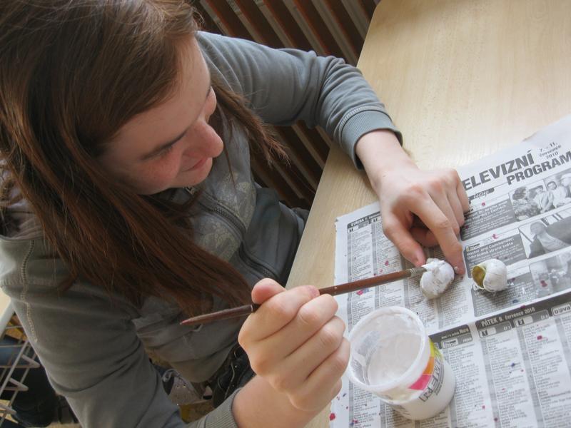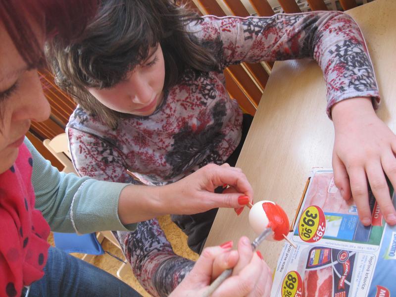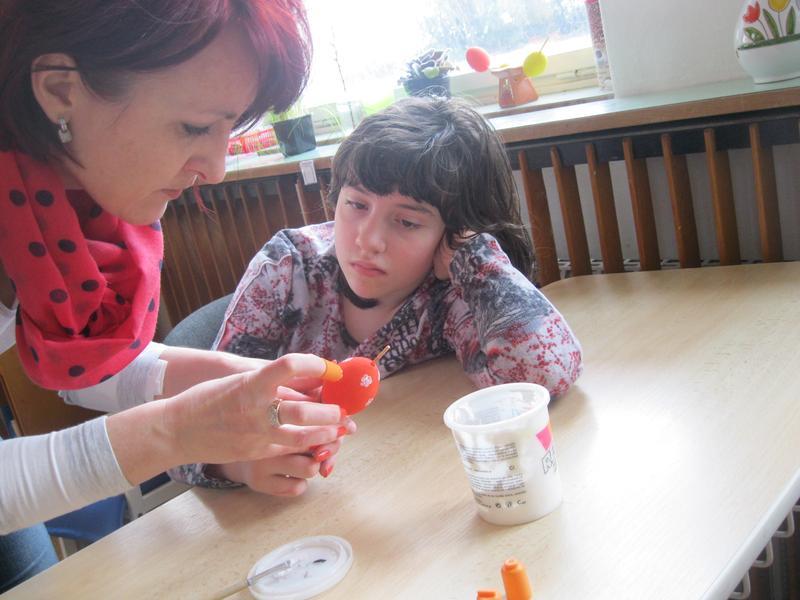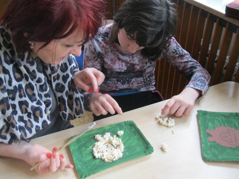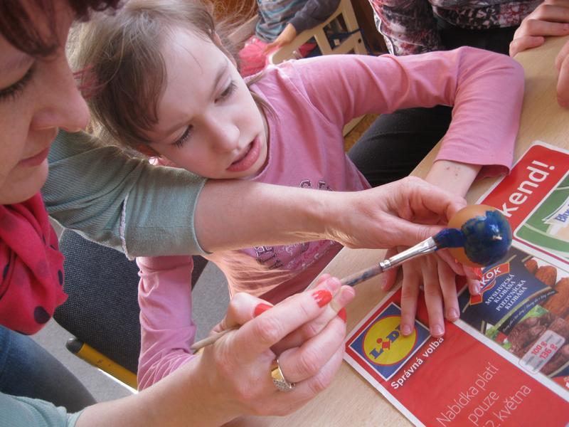 S blížícími se Velikonocemi si vyzkoušely barvení vajec a tisk prstovými tiskátky, malování šnečích ulit, tvorbu beránka z popcornu, sázení osení do květináčků a setí řeřichy do malého pařeniště. Skládaly také velikonoční motiv z barevných kamínků. Nakonec si i pochutnaly na Lučině vlastní výroby.