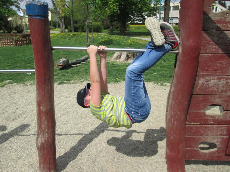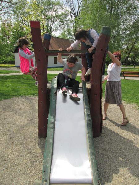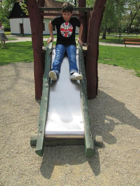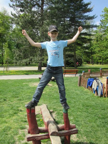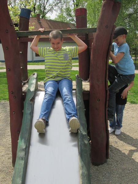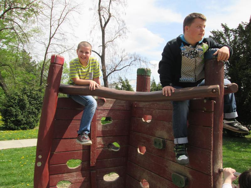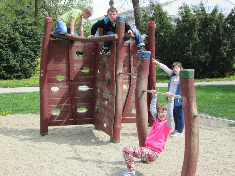 Také výuka tělocviku nepřišla zkrátka. Školáci si rádi užili protažení těla na dětském hřišti ve Smetanových sadech.