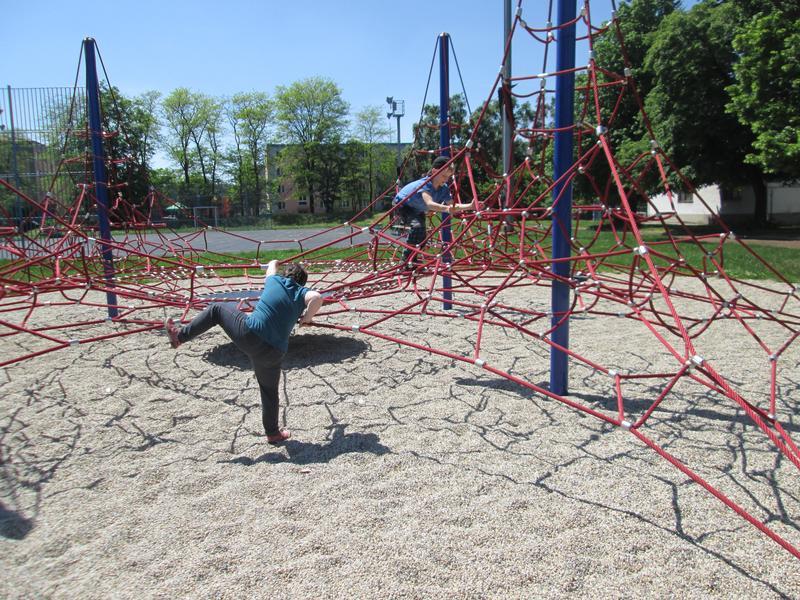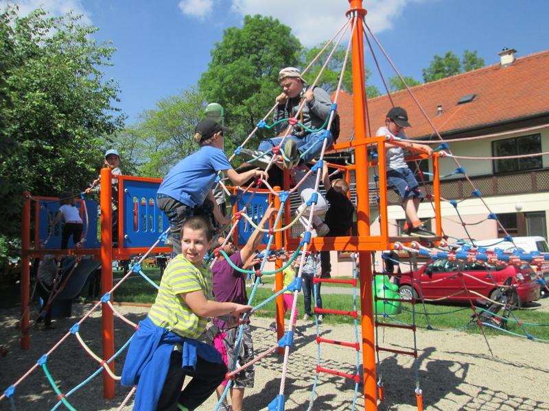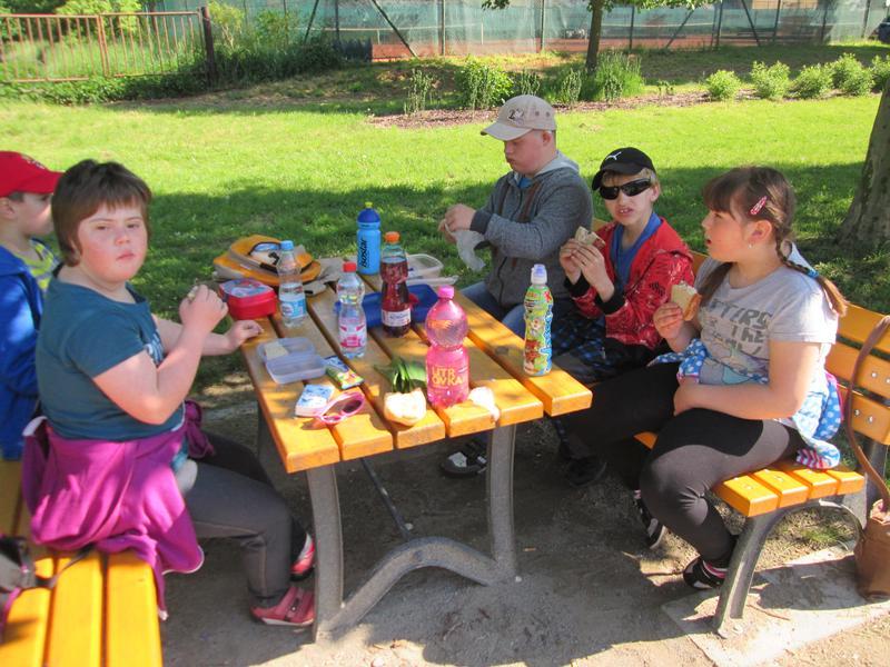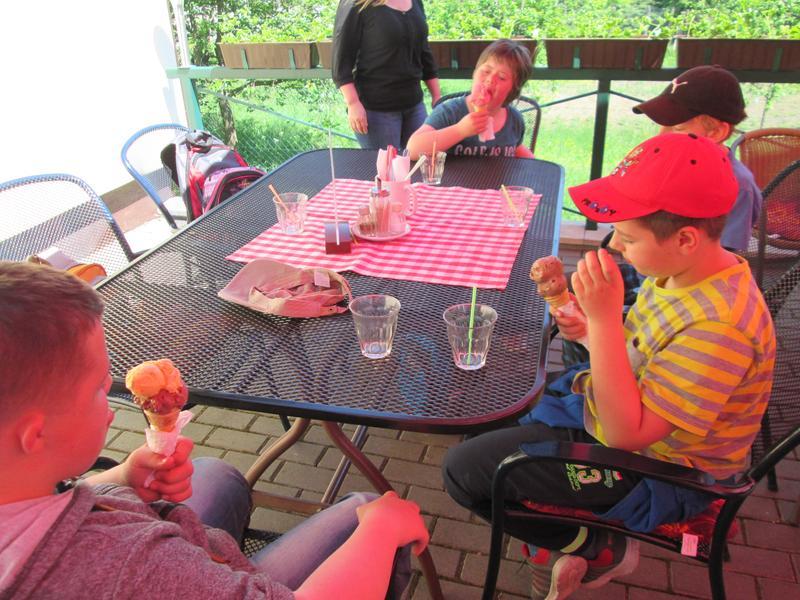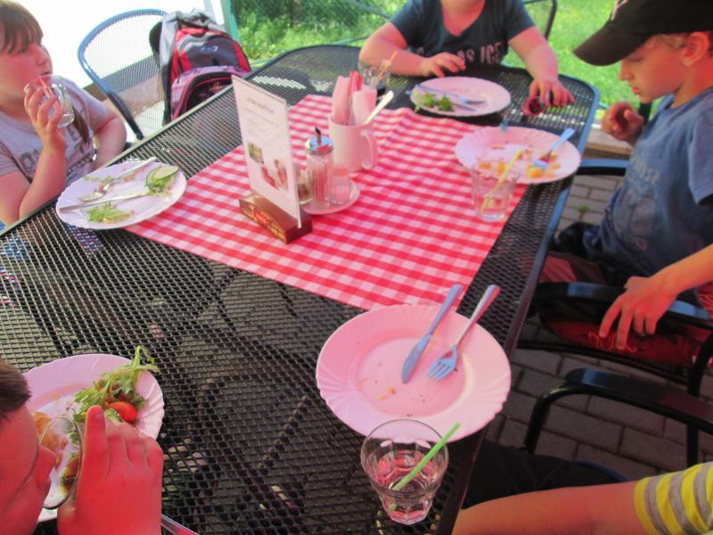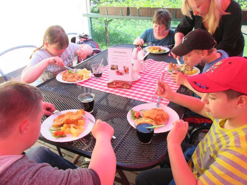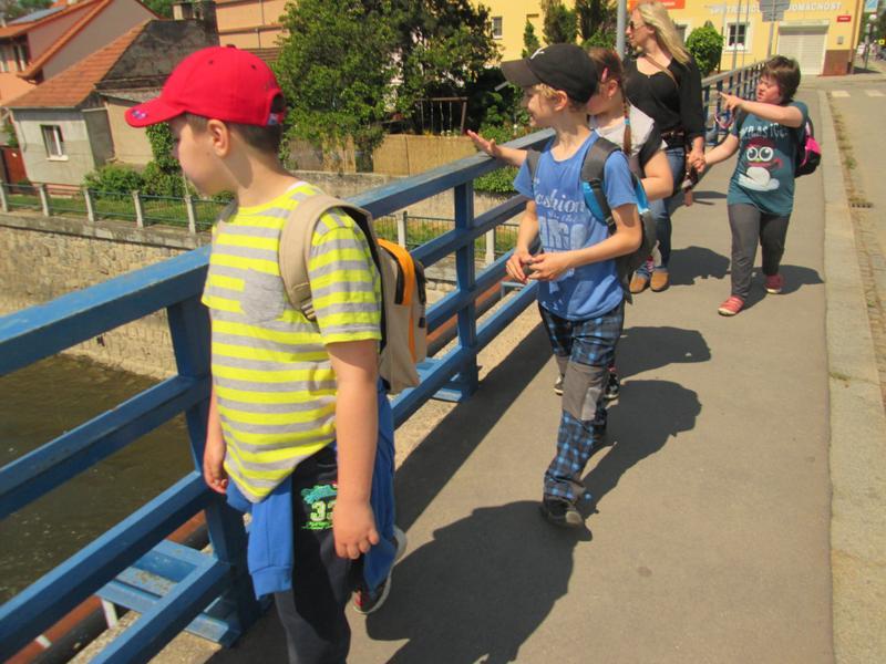 Na zpáteční cestě jsme se podívali k jezu a pak už nás čekal výtečný oběd v restauraci (řízek, brambor, kofola a sladká tečka - zmrzlina). Po obědě jsme se vydali vytrávit kalorie na nedaléké luxusní hřiště, pak už nás čekala jen cesta vlakem zpět domů.