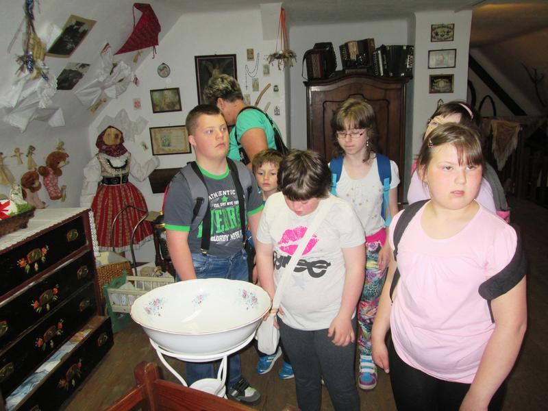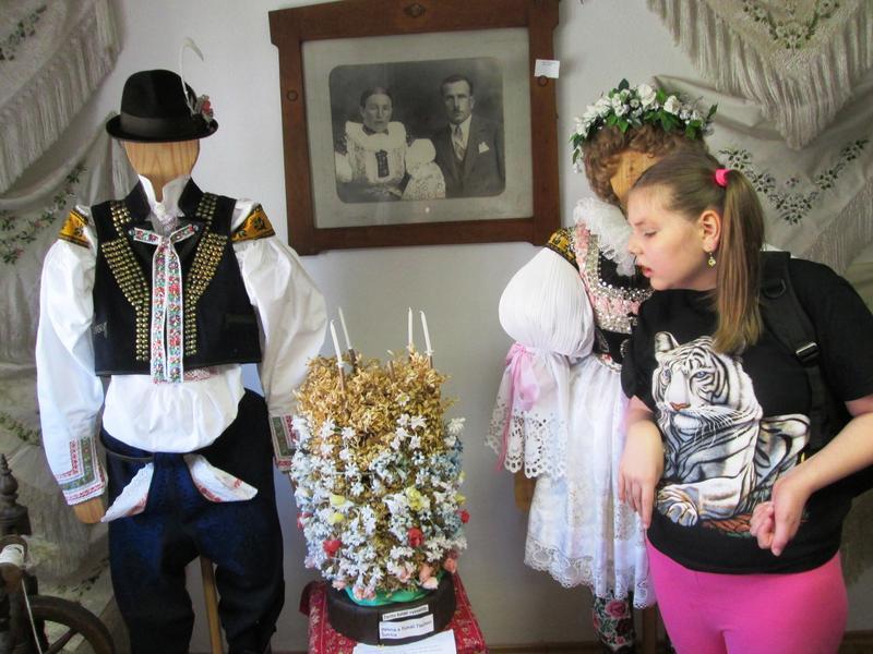 Dalším zastavením bylo místní muzeum, které uchovává památečné předměty z doby našich prapředků. Zařízená izba, výbava kuchyně, dětské hračky, ale také místní kroje a hodpodářské náčiní všeho druhu. Děti se s radostí fotily jako "dojiči kravky Stračeny".