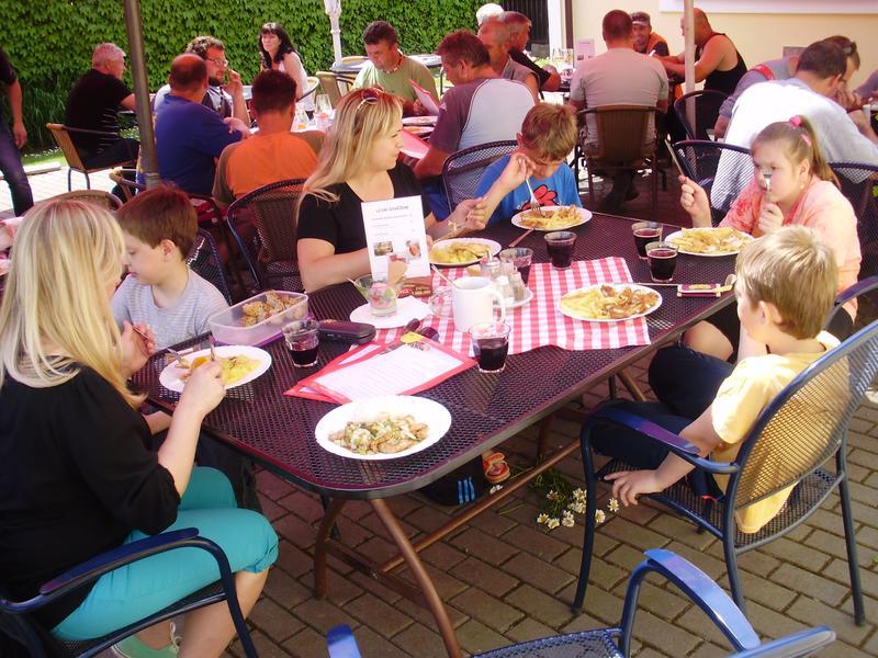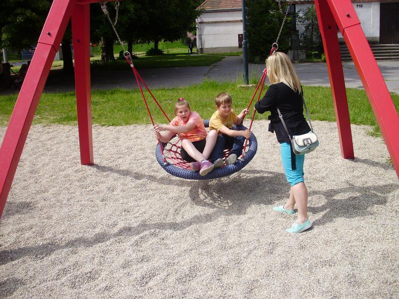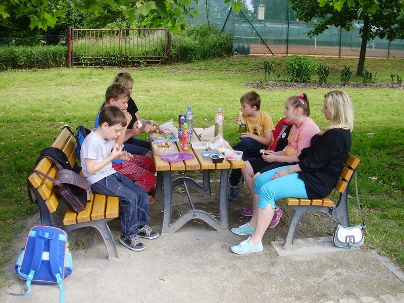 Vysportovali jsme se na dětském hřišti a odměnou za celé krásné dopoledne byl výborný oběd v restauraci.