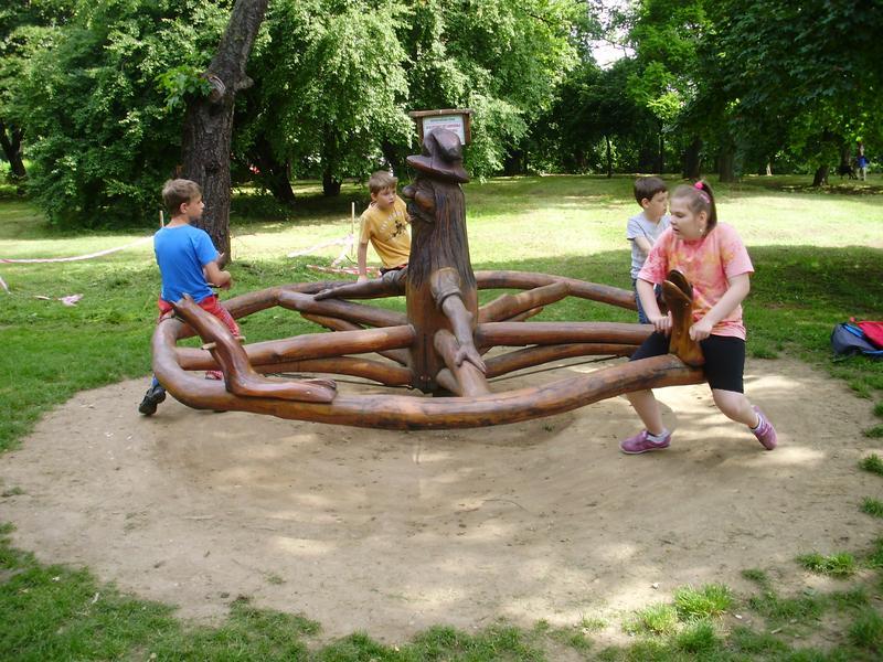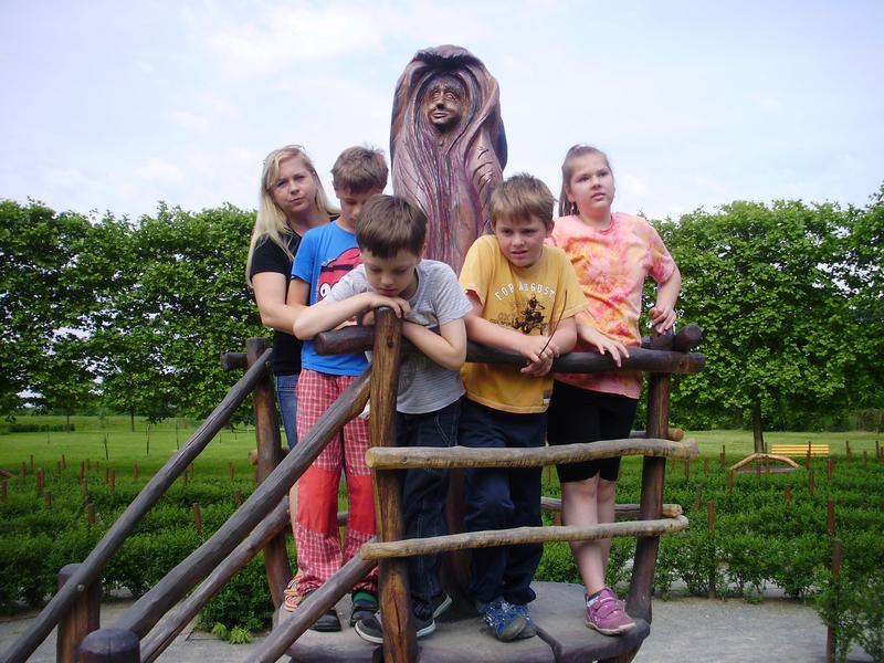 Nasedli jsme na vlak, který nás zavezl do Veselí nad Moravou. Prošli jsme část města i krásnou zámeckou zahradu, tam jsme zdolali labyrint a dali si svačinu.