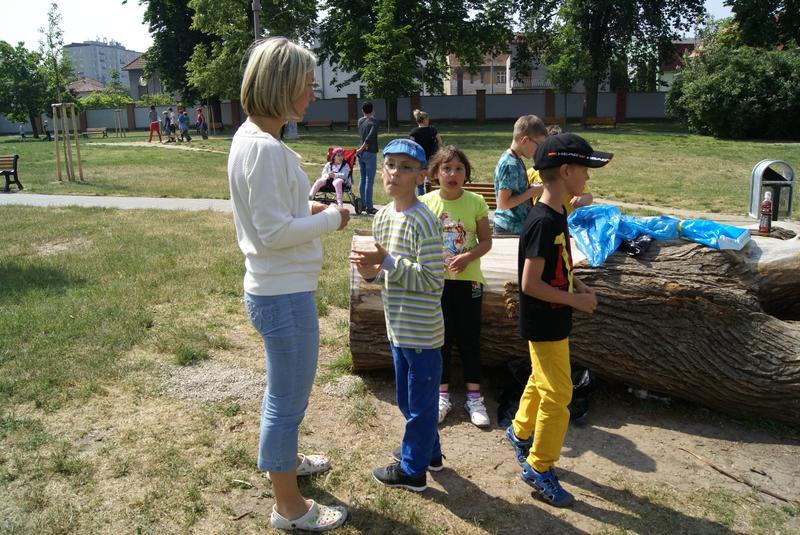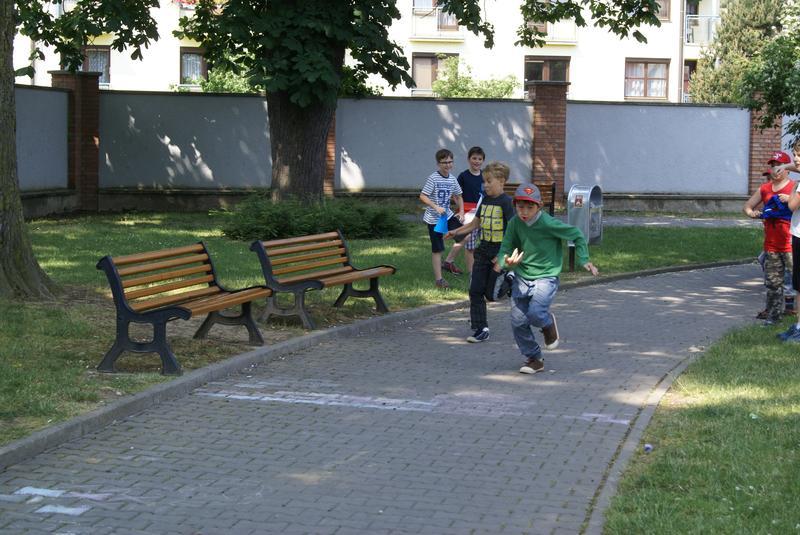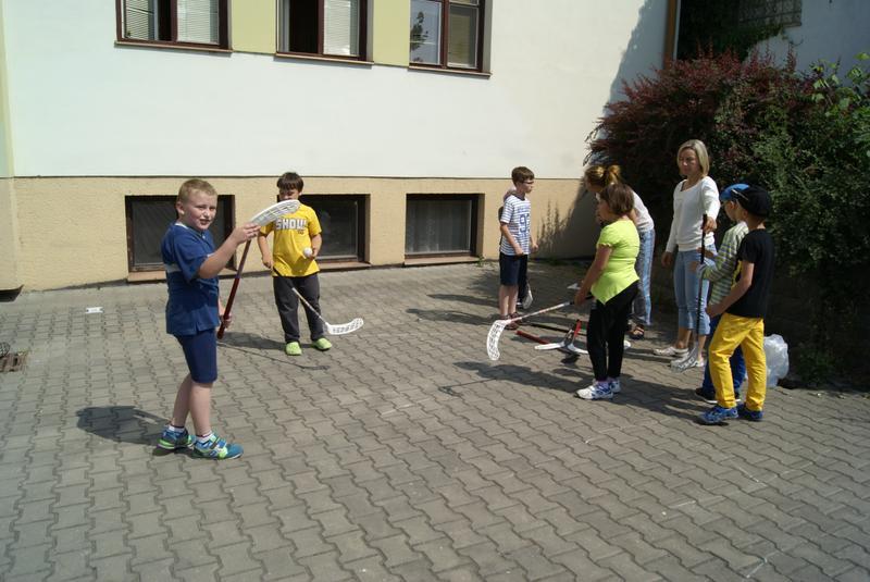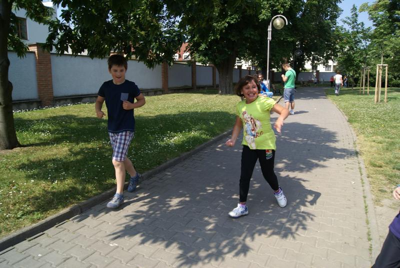 Dnešní tělesná výchova se odehrávala v režii žáků 3.C ZŠ UNESCO, kteří pro nás v areálu parku Bastion přichystali miniolympiádu. Čekal nás sprint na 50 metrů, skoky v pytlích, skok do dálky, hod do dálky, florbal a další disciplíny.