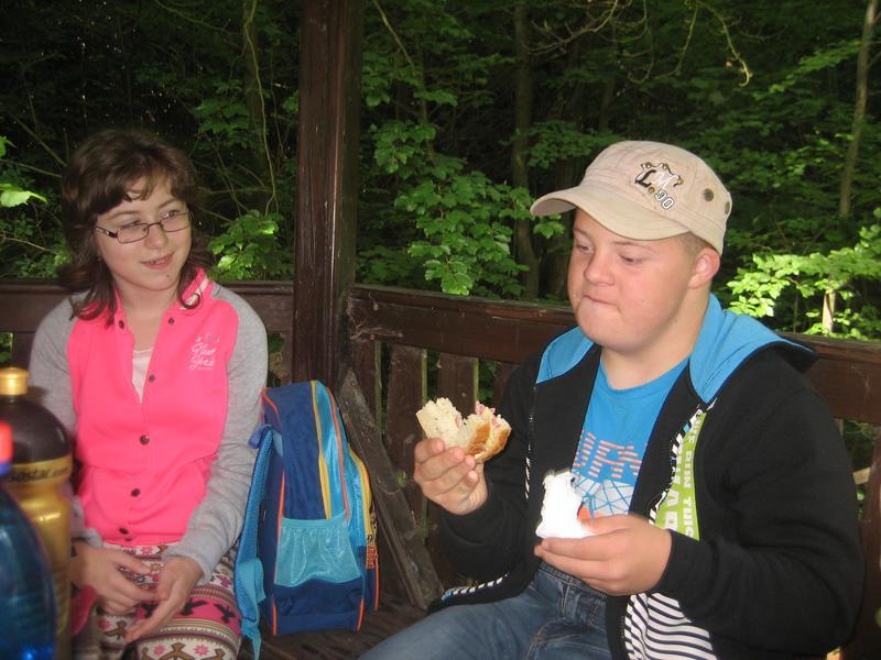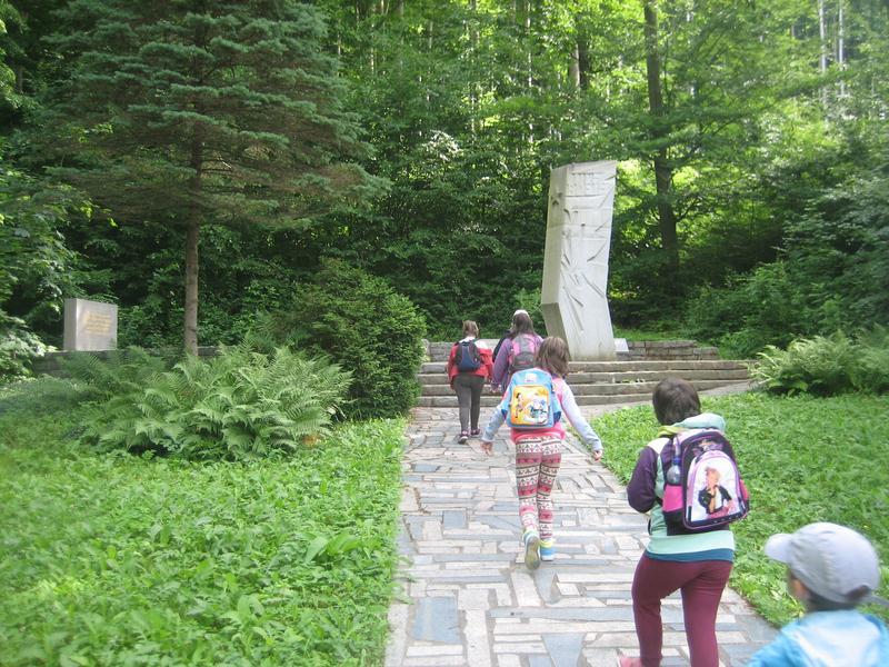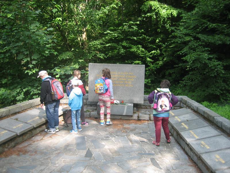Pěkné počasí a čistý vzduch - svačinka nám chutnala! Dorazili jsme k památníku ze II. světové války, kde jsme si zopakovali co je minulost, současnost a budoucnost. Také jsme si zařadili do programu malé cvičení obratnosti a potom jsme se vydali na zpáteční cestu na autobusovou zastávku.
