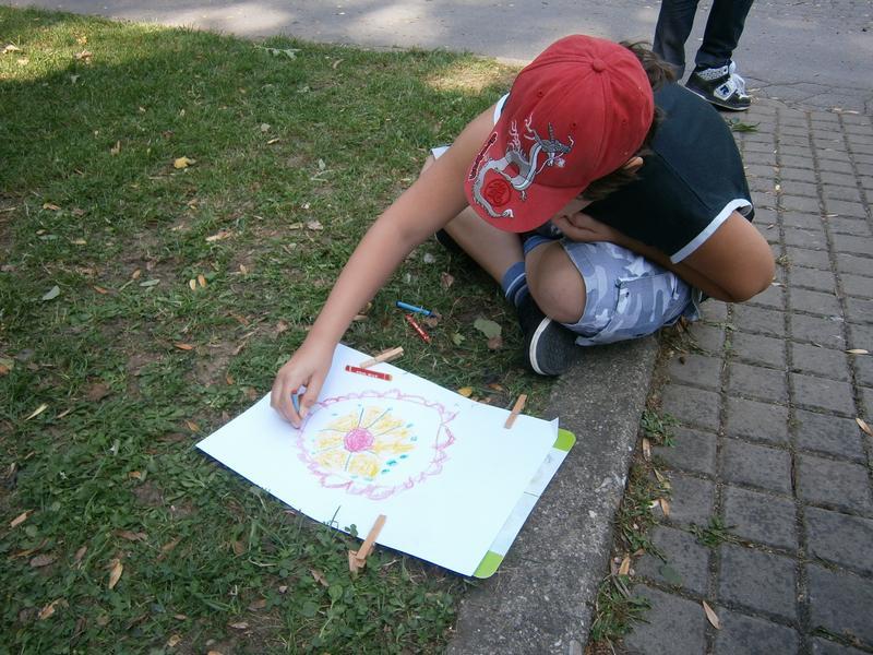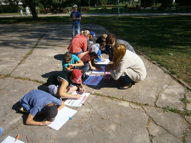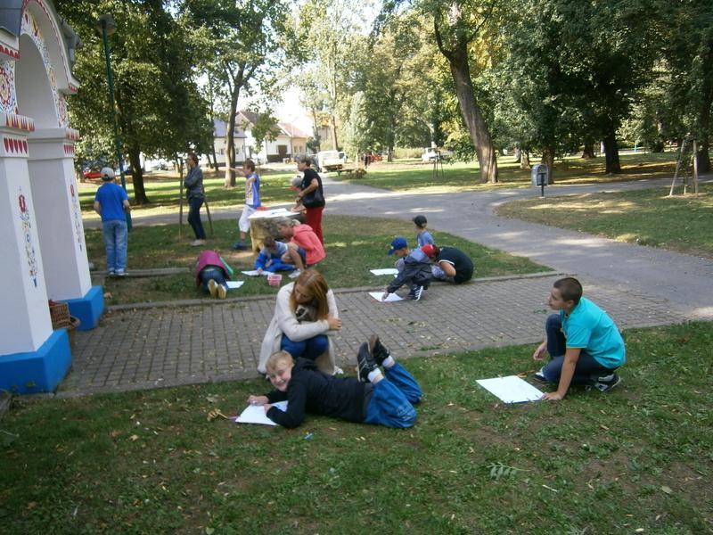 Malování v terénu mělo svá úskalí...vítr, nepohodlí při malování, ale práce nám šla od ruky a zvládli jsme nakreslit kromě jednotlivých prvků slováckých ornamentů i celkový pohled Slovácké půdy.