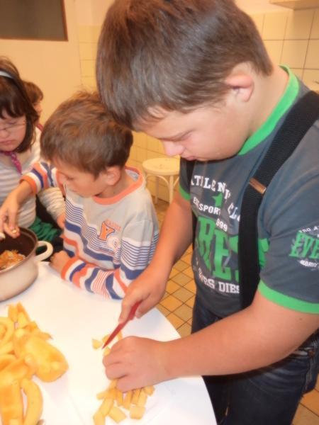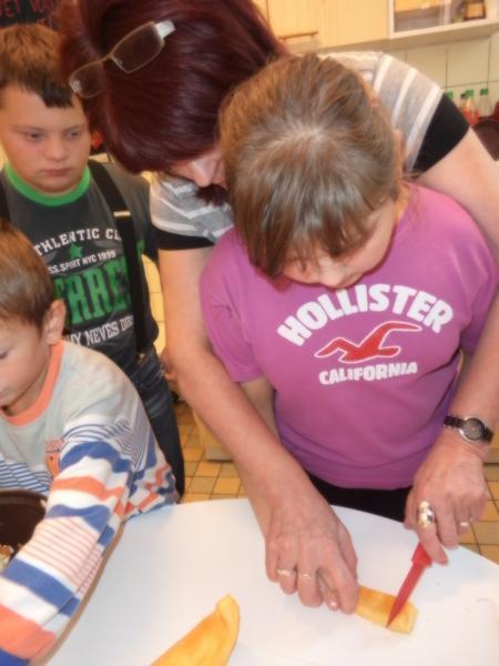 Učili jsme se zpracovávat podzimní plodiny - umývali jsme je, čistili, loupali, krájeli a vysvětlili si pojem vaření, pečení a grilování. Také jsme si zopakovali hygienická pravidla při vaření a na co si při vaření máme dávat pozor, jaké nám hrozí nebezpečí úrazu.