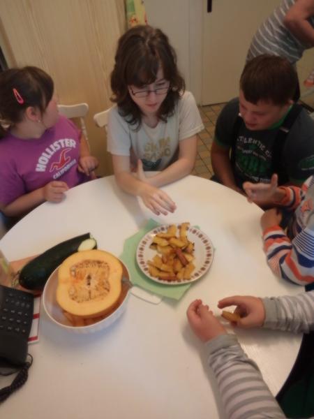 V úterý 6. října jsme vařili dýňovou polévku, pekli dýni a grilovali cuketu.