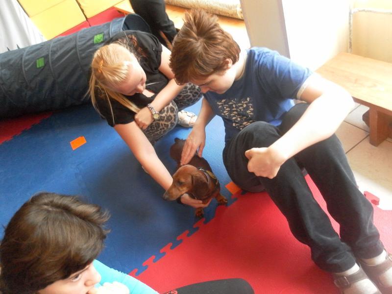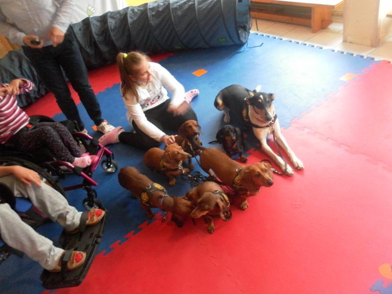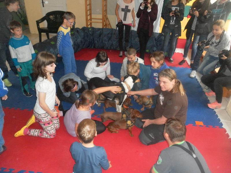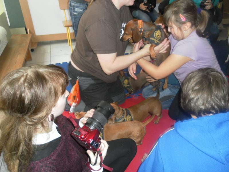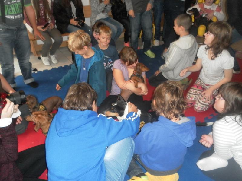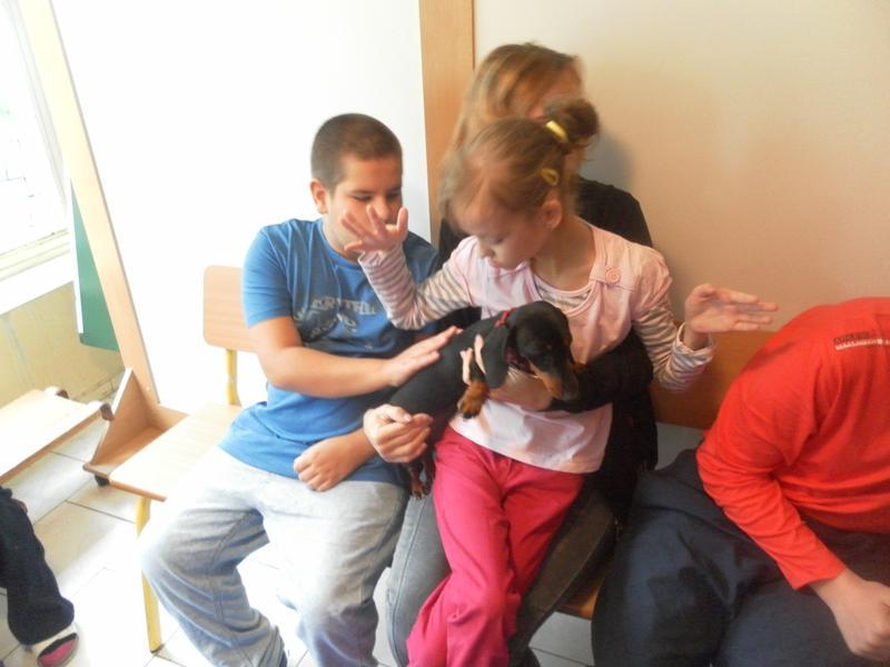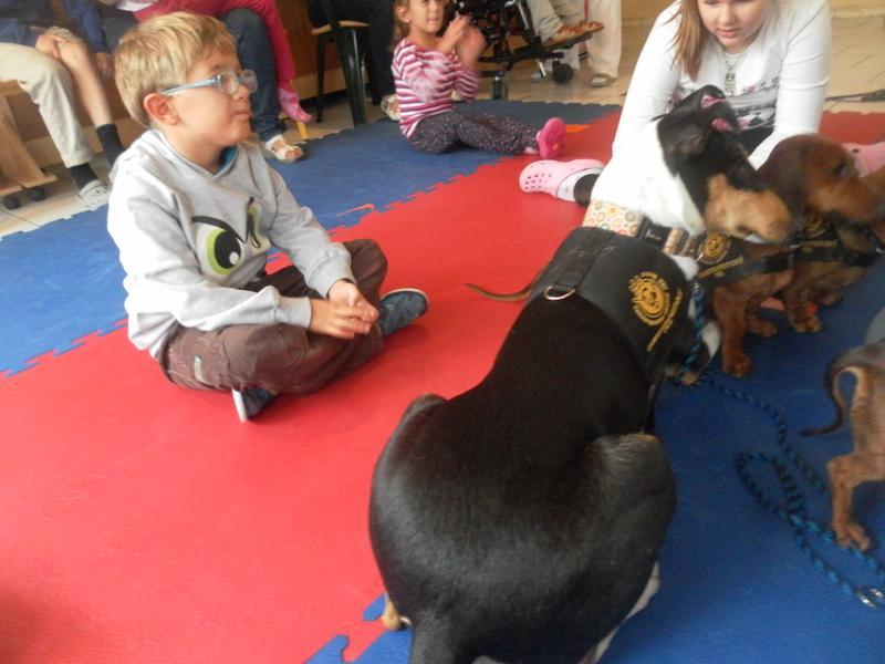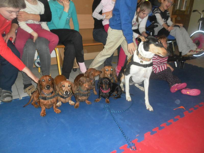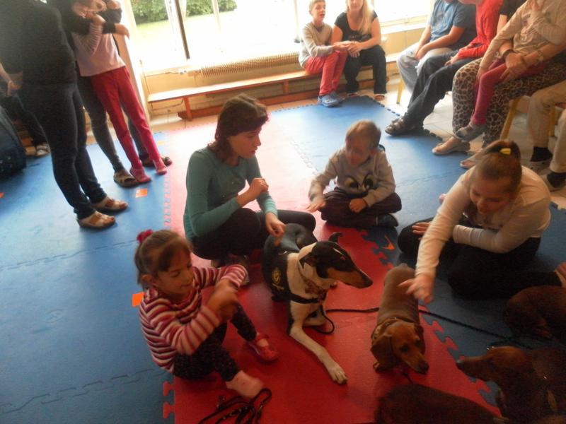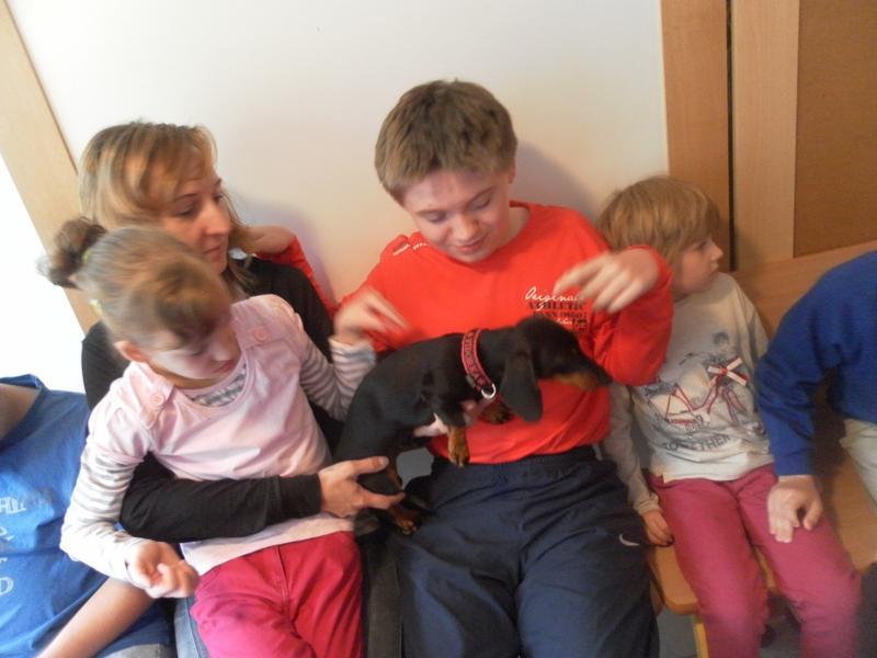 Do naší školy opět zavítali naši zvířecí přátelé i se svou paničkou. Skupinka jezevčíků a hladkosrsté kolie znovu potěšila naše děti i paní učitelky.