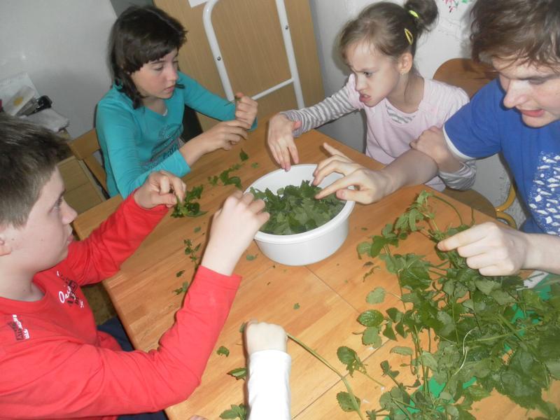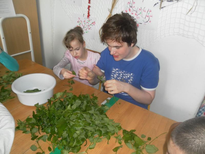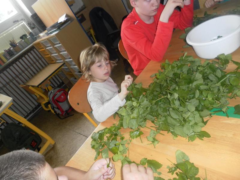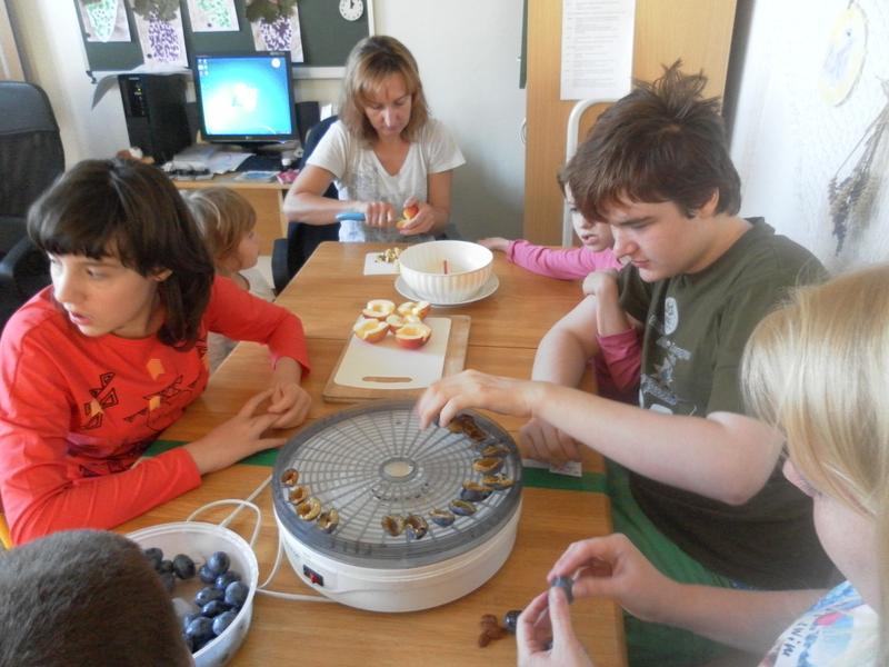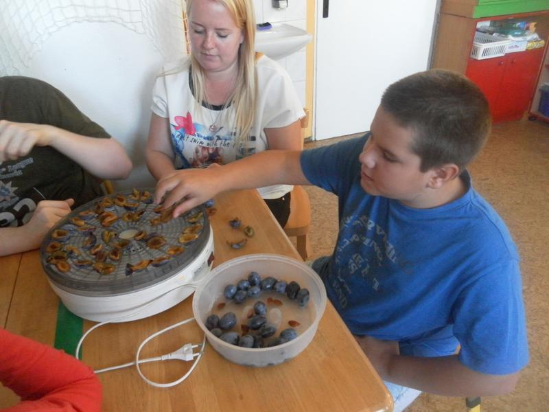 Ovoce jsme dokonce vymodelovali a umístili ho na dřevěné špalíky. Další pracovní činností byla příprava meduňkového sirupu. Teplé počasí nám ještě umožnilo poslední sklizeň této byliny.