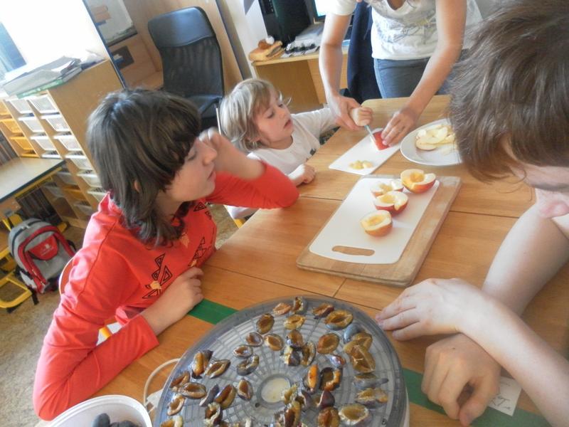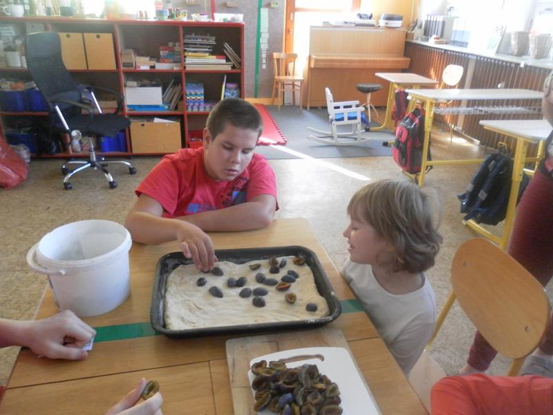 Také děti ze třetí třídy si vyzkoušely různé způsoby jeho zpracování. Krájely, loupaly, sušily, připravovaly těsto a nakonec upekly kynutý švestkový koláč. Vše se nám k naší radosti zdařilo, po koláči se jen zaprášilo a sušené křížaly určitě využijeme v období Vánoc.