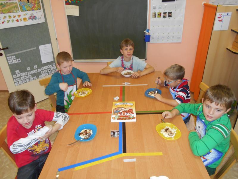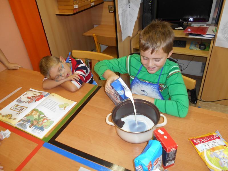 V X. třídě jsme si po přečtení zahráli na Hrnečku, vař! Z toho byli všichni nadšení a nakonec se jen olizovali. Nutno dodat, že na rozdíl od pohádky nám ale kaše neutekla :-).