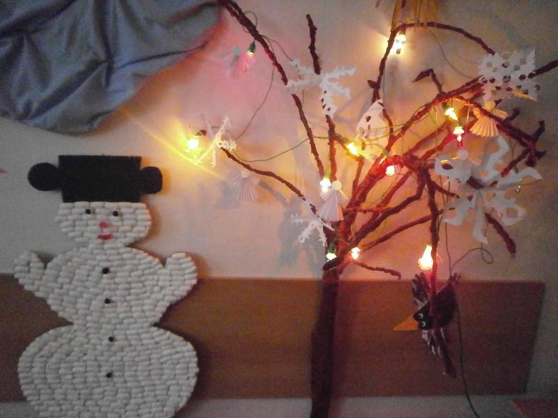 Nejdříve si udělali z papíru andílky a sněhové vločky na stromeček.Taky si vyzdobili třídu a vyrobili přáníčka. Celým Domovem voní perníčky a tiše hrají koledy.