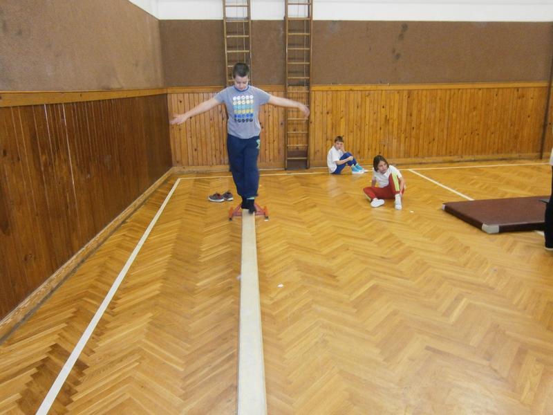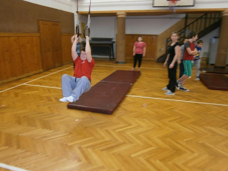 V dnešní hodině tělesné výchovy jsme úspěšně prošli testem zdatnosti. Ten započal jogínský pozdrav Slunci a následovala série náročných úkolů na stanovištích. Zvládli jsme překážku v podobě švédské bedny, závěs a houpání na kruzích, skoky na trampolíně, přechod přes kladinu, pokus o šplh na laně a posilování na lavičce se zdoláváním výšek.