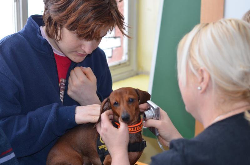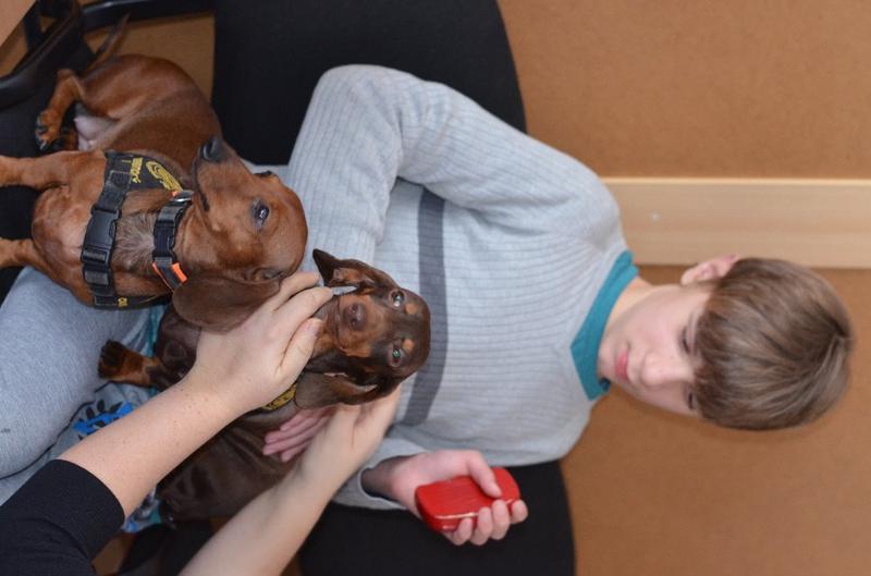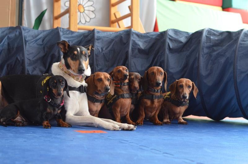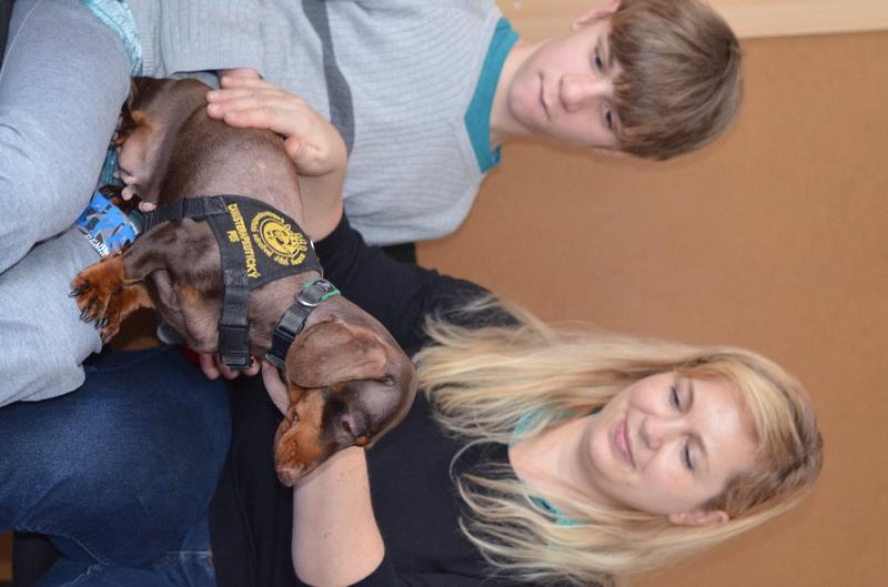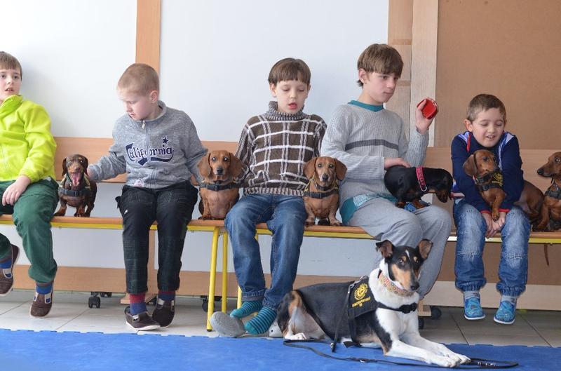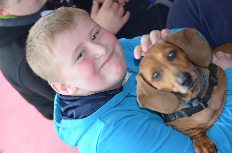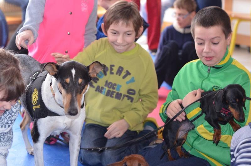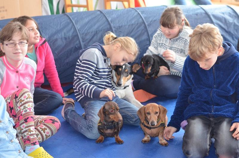 Stalo se již tradicí, že naši školu navštěvují psí svěřenci paní canisterapeutky Mišákové - partička jezevčíků v doprovodu krátkostrsté kolie. Děti je znovu přivítaly s nadšením, opět měly možnost vyzkoušet si vedení pejska na vodítku, přivolání, prolézání tunelem.