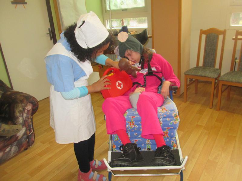 První den po jarních prázdninách jsme si zpříjemnili výuku karnevalem. Žáci i klienti Diakonie si z domova přinesli kostýmy a rej mohl začít. Největší úspěch měla určitě vrchní sestra v akci - Valentýnka, které zdatně sekundoval primář chirurgie - Štěpán.